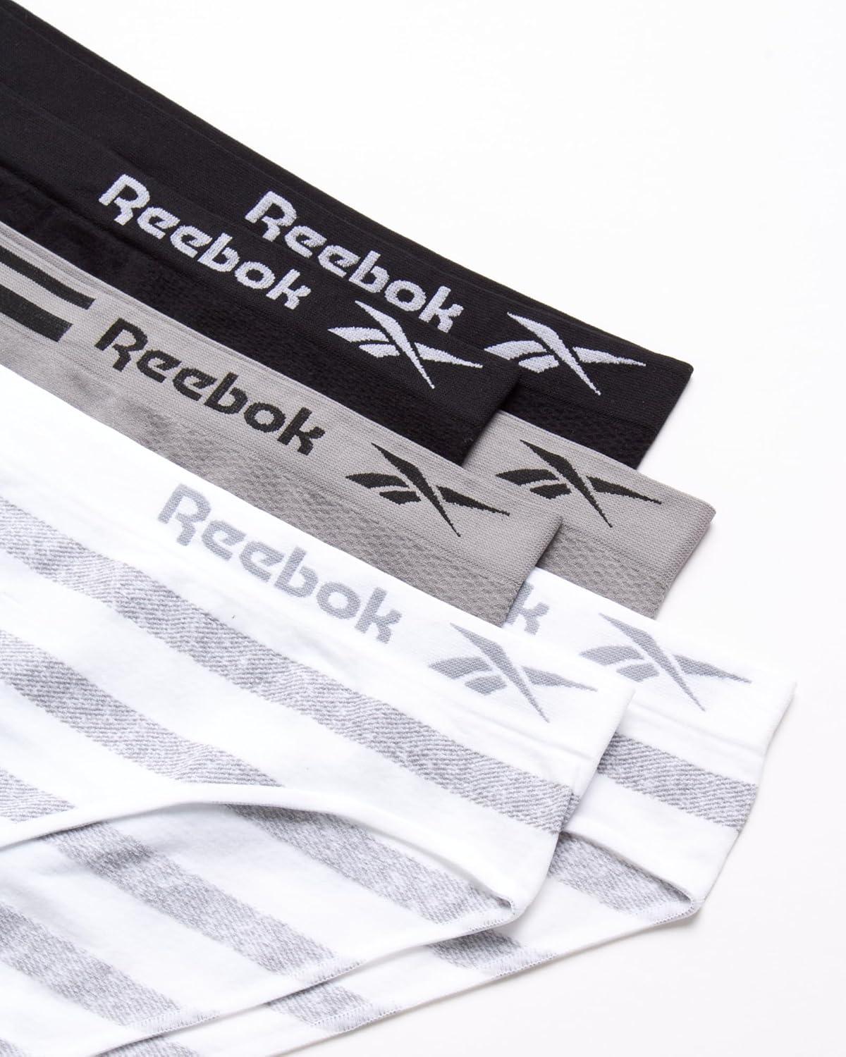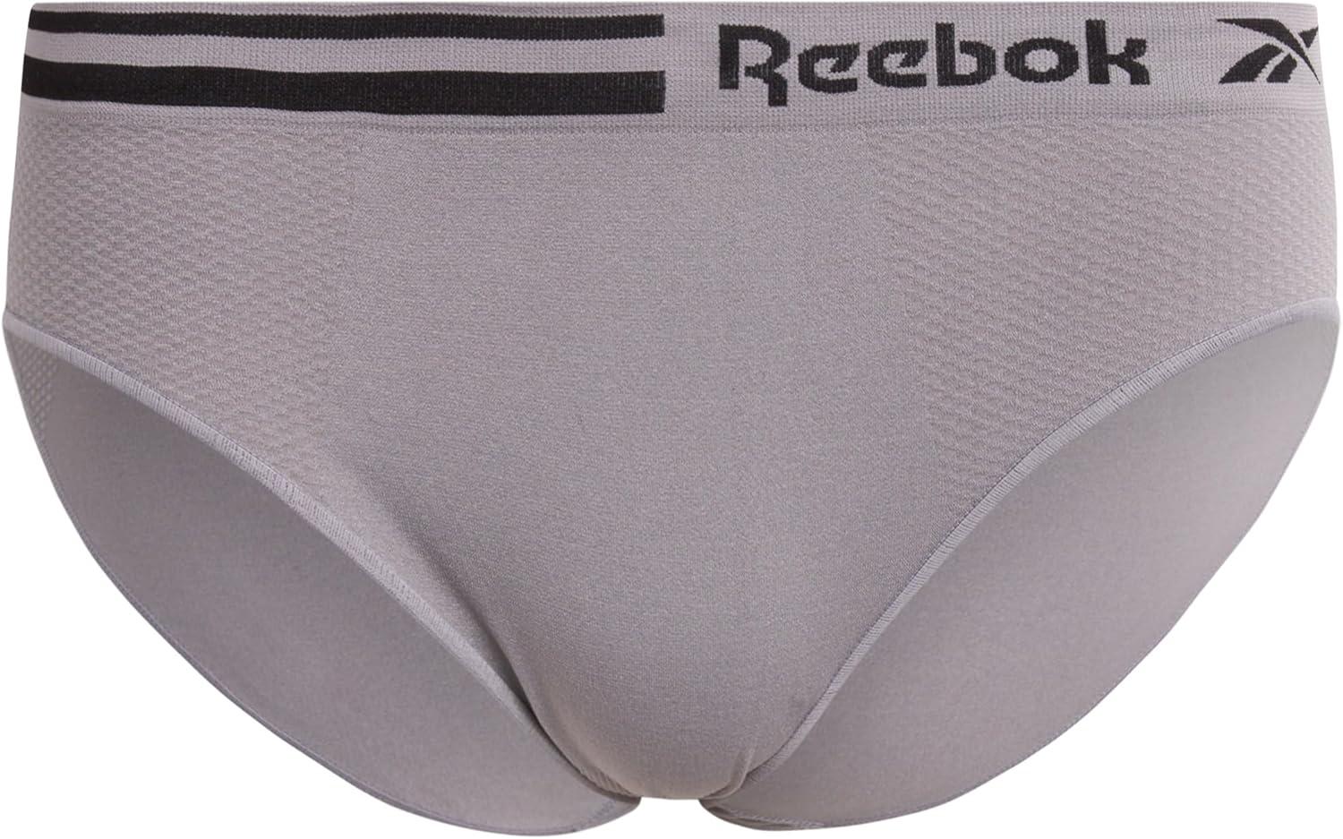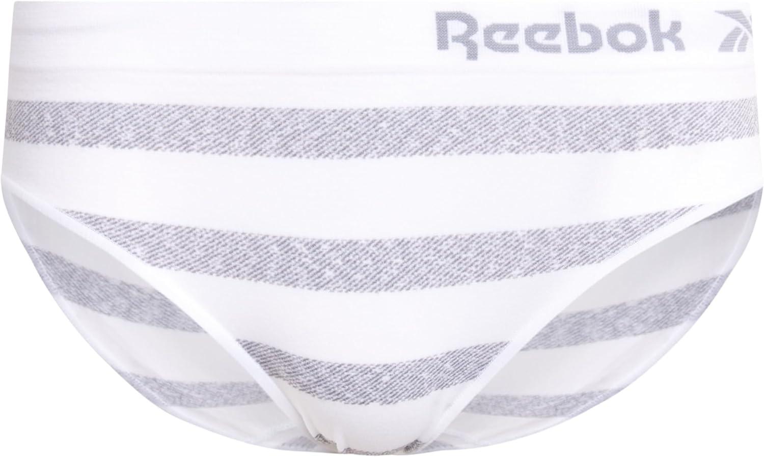 Reebok Women's Bikinis - 6 Pack Microfiber Seamless Womens Bikini Panties - Breathable Underwear for Women (S-XL)(Sharkskin/White Stripe/Black)