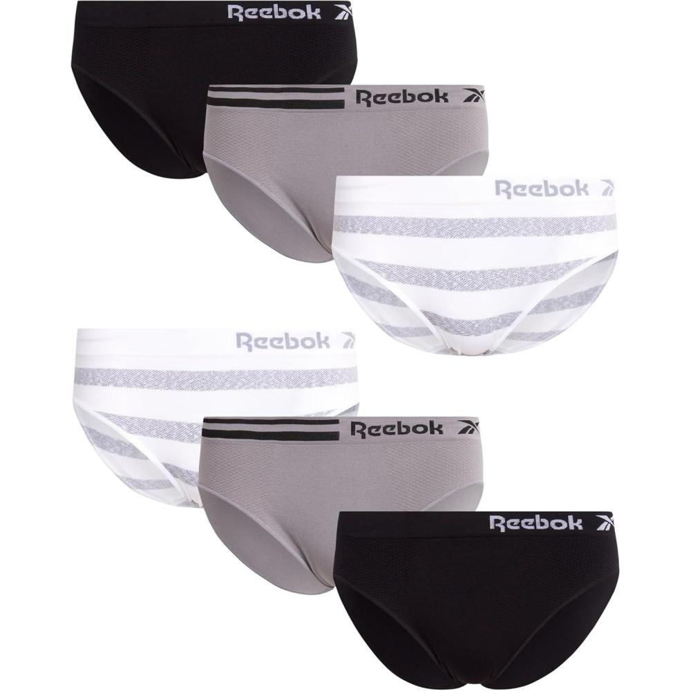 imageReebok Womens Bikinis  6 Pack Microfiber Seamless Womens Bikini Panties  Breathable Underwear for Women SXLSharkskinWhite StripeBlack