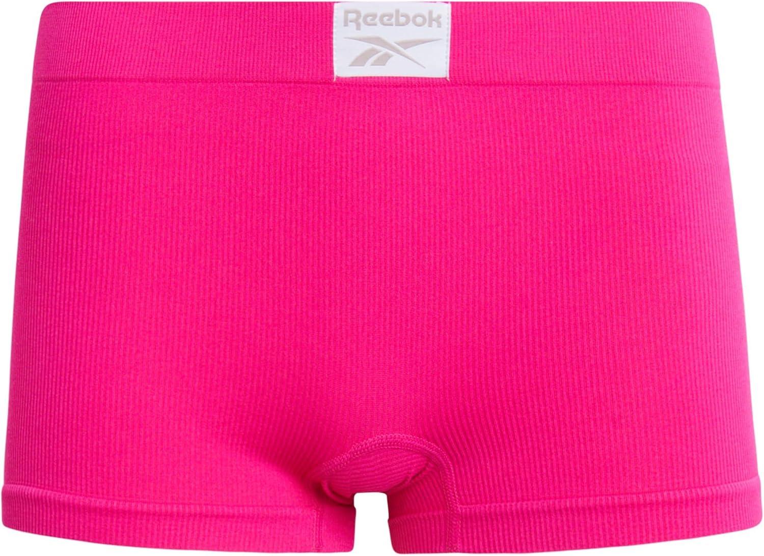 Reebok Womens Boyshorts - 8 Pack Breathable Stretch Ribbed and Cut-Out Mesh Boy Shorts Underwear for Women (Sizes: S-XL)(Fuchsia/Light Grey/Pink/Blue- Rib)