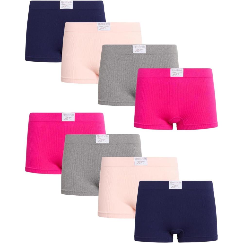 imageReebok Womens Boyshorts  8 Pack Breathable Stretch Ribbed and CutOut Mesh Boy Shorts Underwear for Women Sizes SXLFuchsiaLight GreyPinkBlue Rib