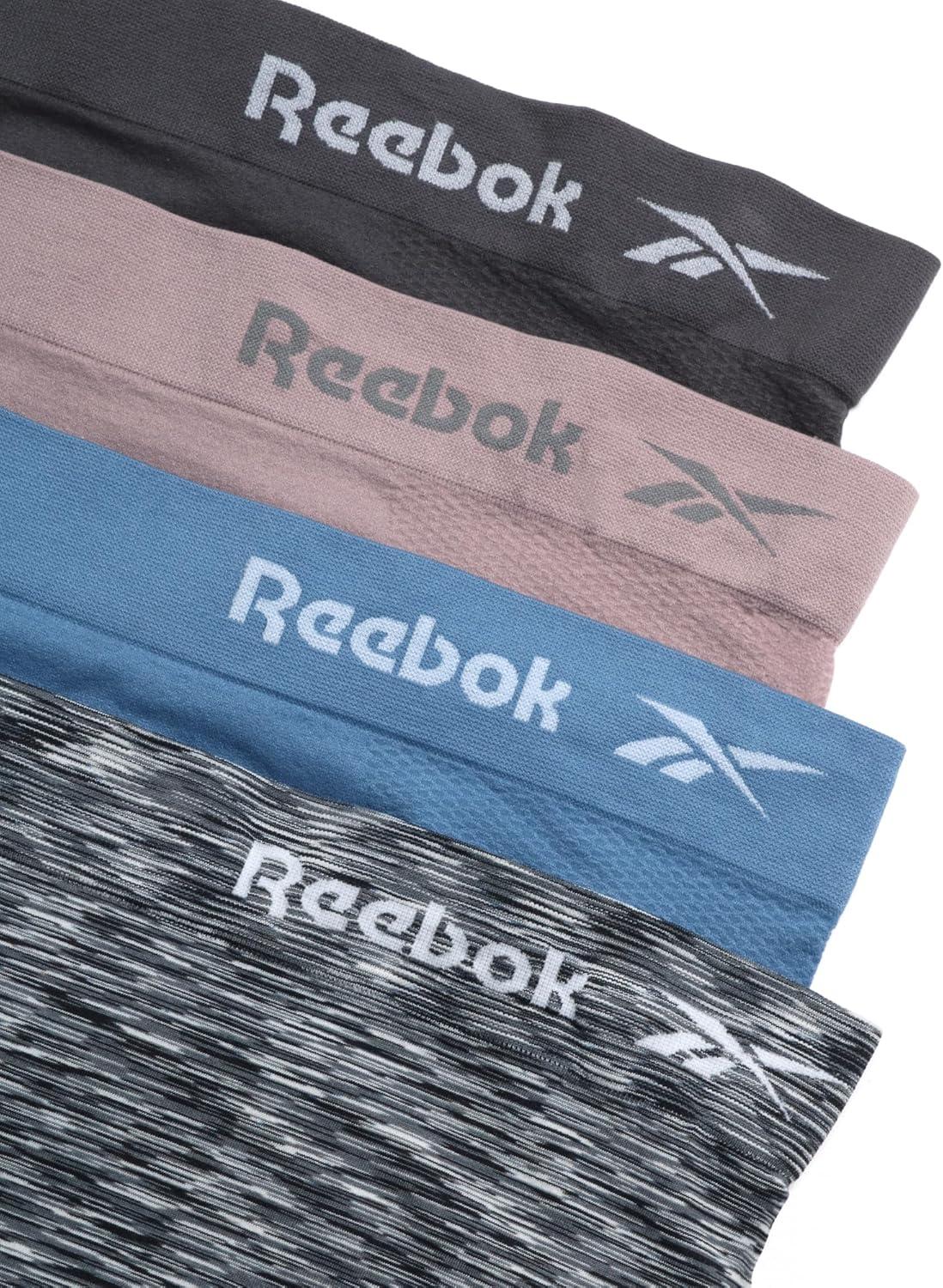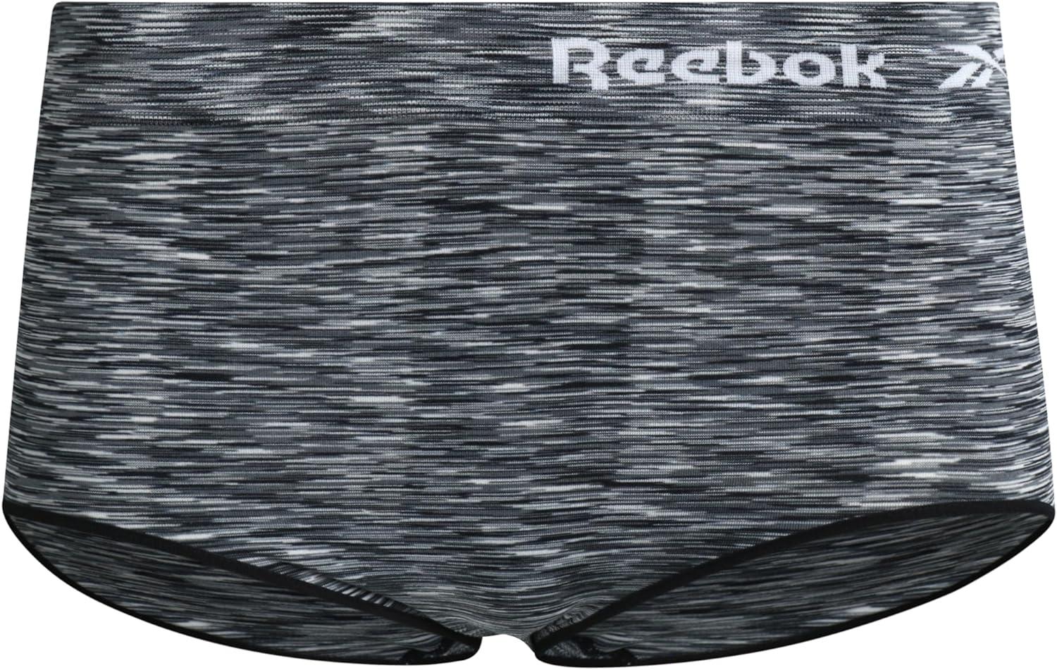 Reebok Womens Briefs Underwear - 4 Pack Seamless Stretch Performance High Cut or Boyshorts Panties for Women (Sizes: S-XL)(Black Spacedye/Blue/Toadstool/Blackened Pearl)