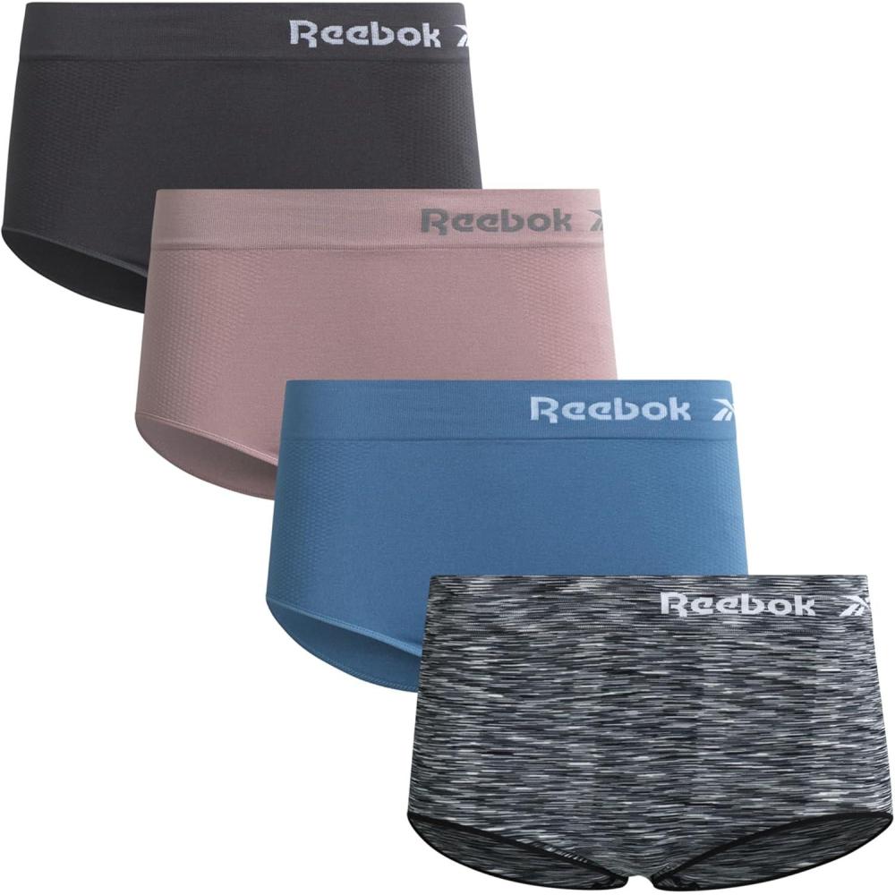 Reebok Womens Briefs Underwear – 4 Pack Seamless Stretch Performance High Cut or Boyshorts Panties for Women (Sizes: S-XL)(Black Spacedye/Blue/Toadstool/Blackened Pearl)