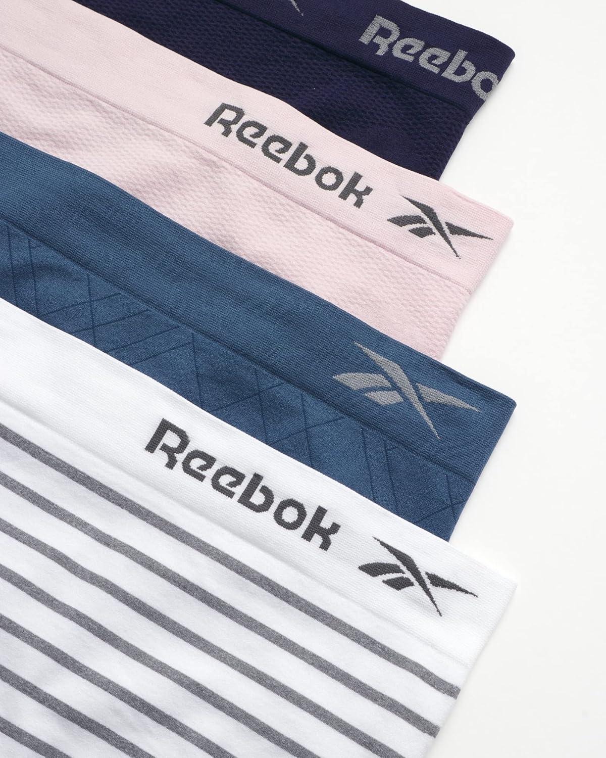 Reebok Womens Briefs Underwear – 8 Pack Stretch Performance Seamless Panties for Women Boy Shorts Underwear Pack(Blue/Purple/White Stripe)