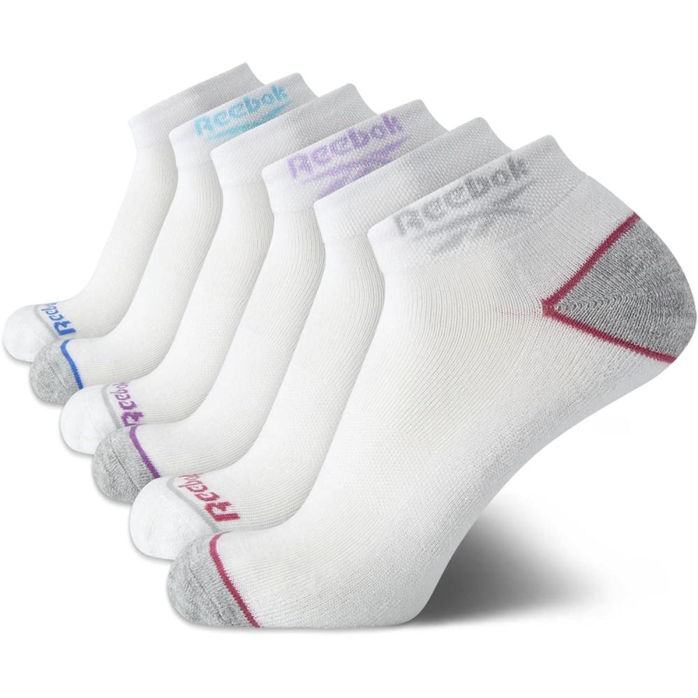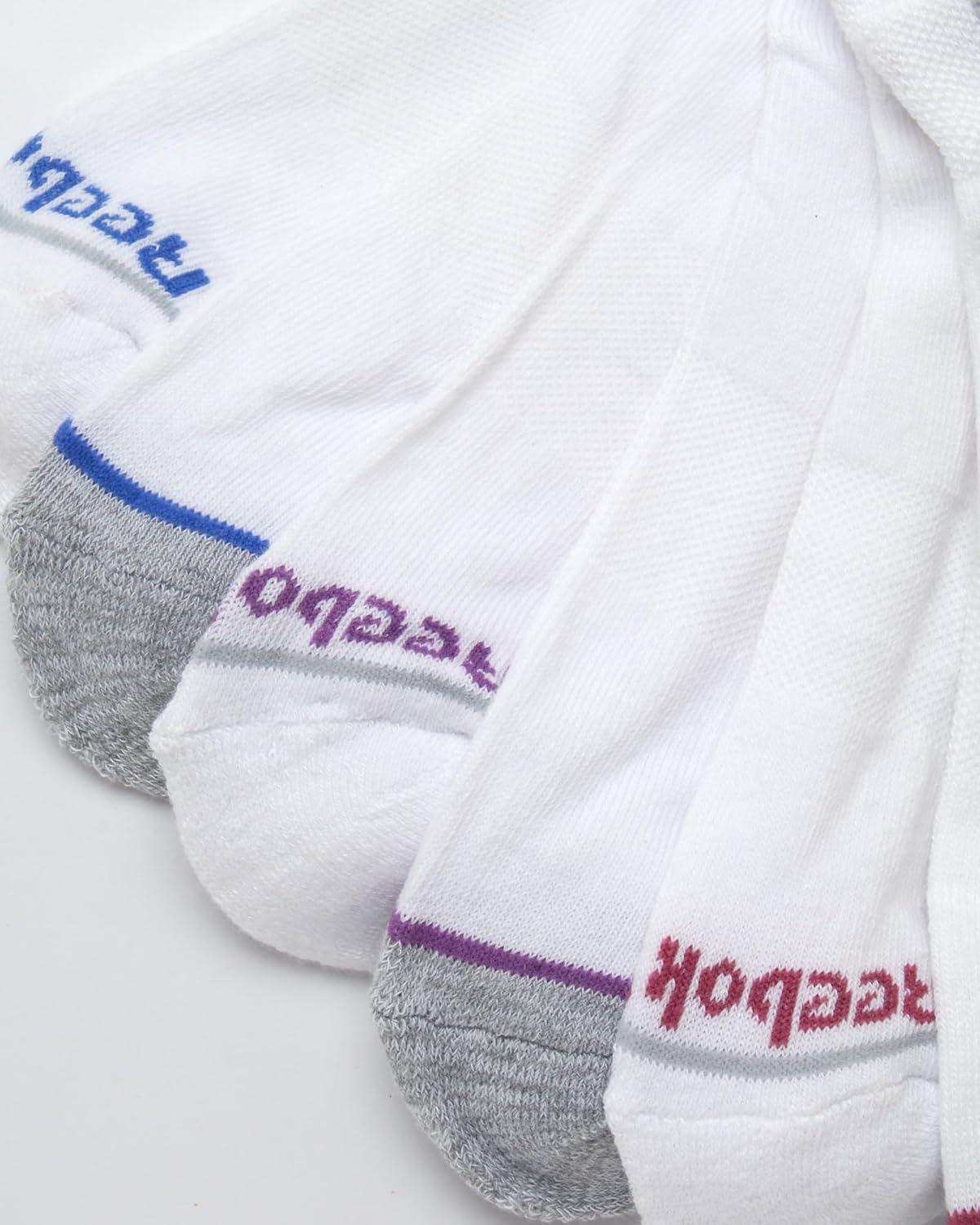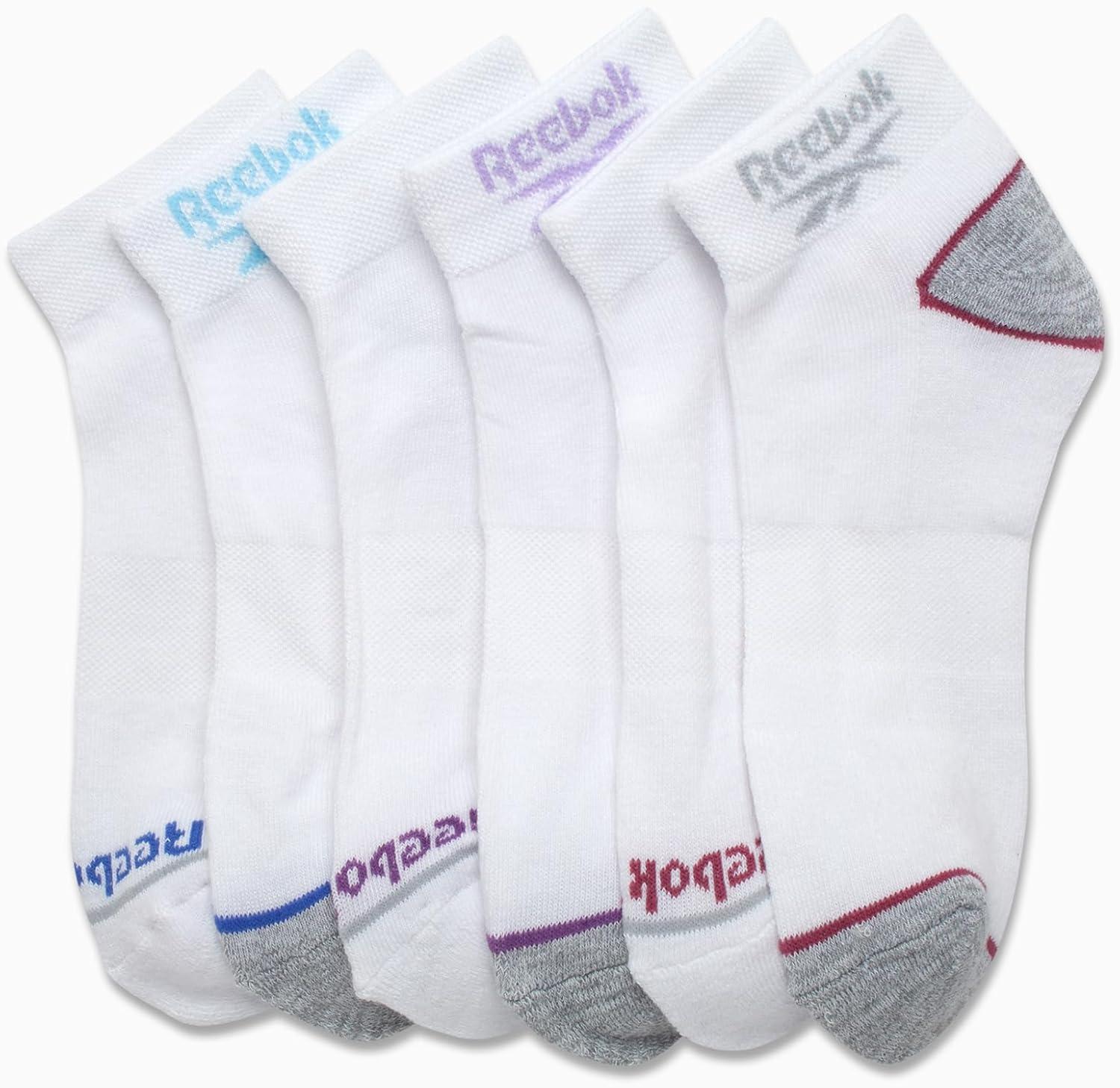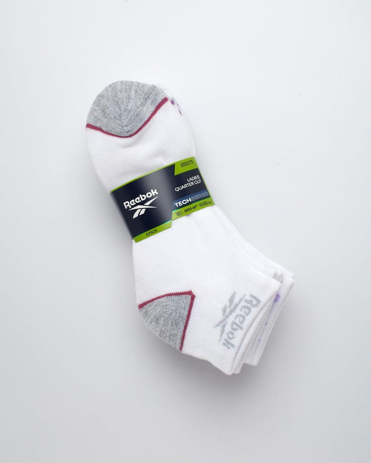 Reebok Womens Comfort Cushioned Athletic Quarter Cut Socks (6 Pack)(White/Grey Logo)