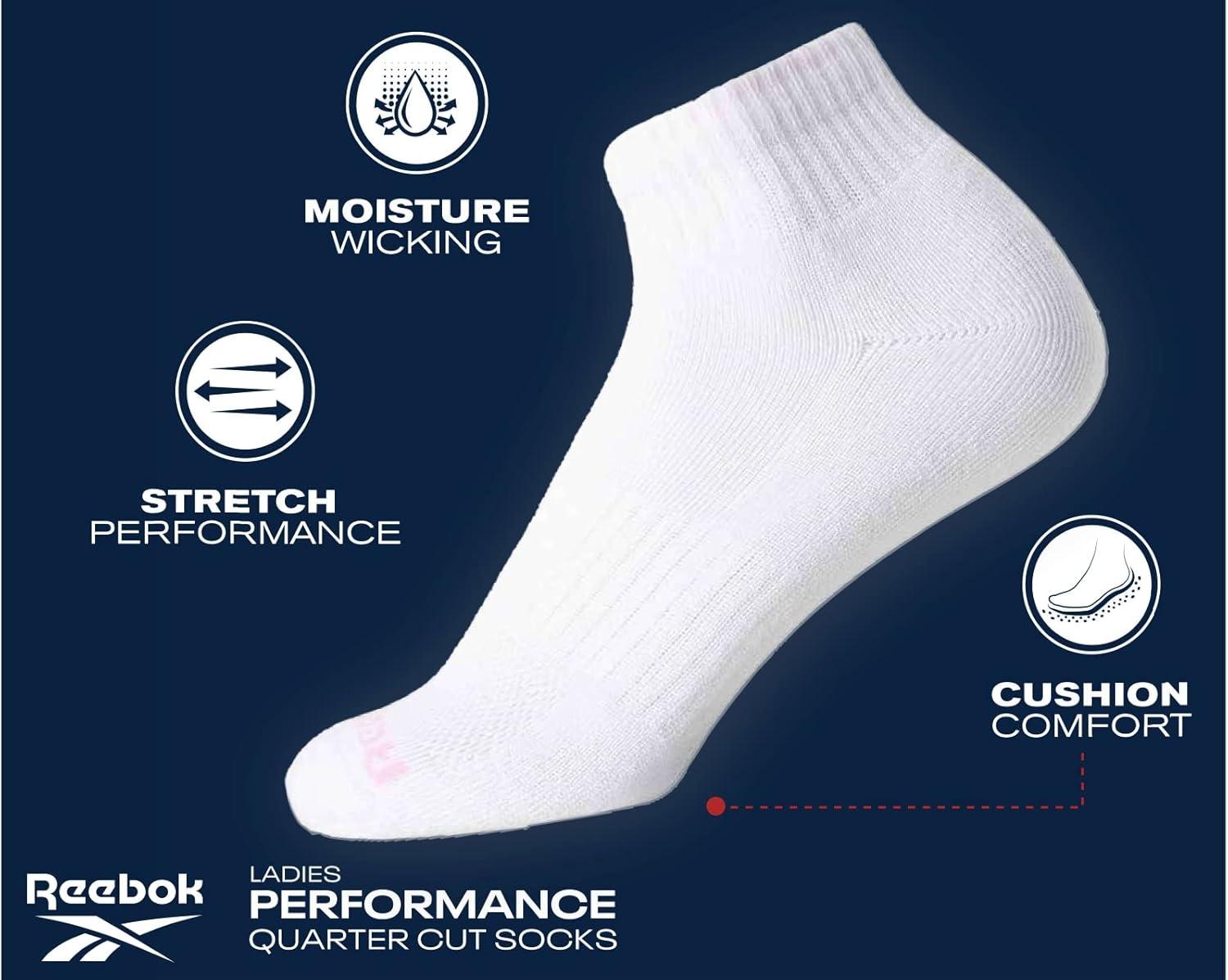 Reebok Women's Quarter Cut Basic Socks are designed for reliable performance during everyday activities. Whether on the court, in the gym, or on the track, these socks are made for movement. The comfort fit gently hugs the foot and stays in place while offering cushioning to support active routines. Made with high-quality materials, these socks are built to endure daily wear and repeated washing while maintaining their shape and comfort. Reinforced heel and toe areas help extend the life of the socks and offer added durability where it’s needed most. Soft cushioning helps reduce fatigue and adds extra comfort throughout the day. The breathable design manages heat and sweat, helping feet stay dry and cool. Designed for active lifestyles, these socks deliver a smooth, supportive feel. Easy to care for—simply machine wash and tumble dry. Please reference the variations for all available sizes and colors. Reebok creates dependable, everyday wear designed with comfort in mind. Visit our storefront to explore more from our collection.