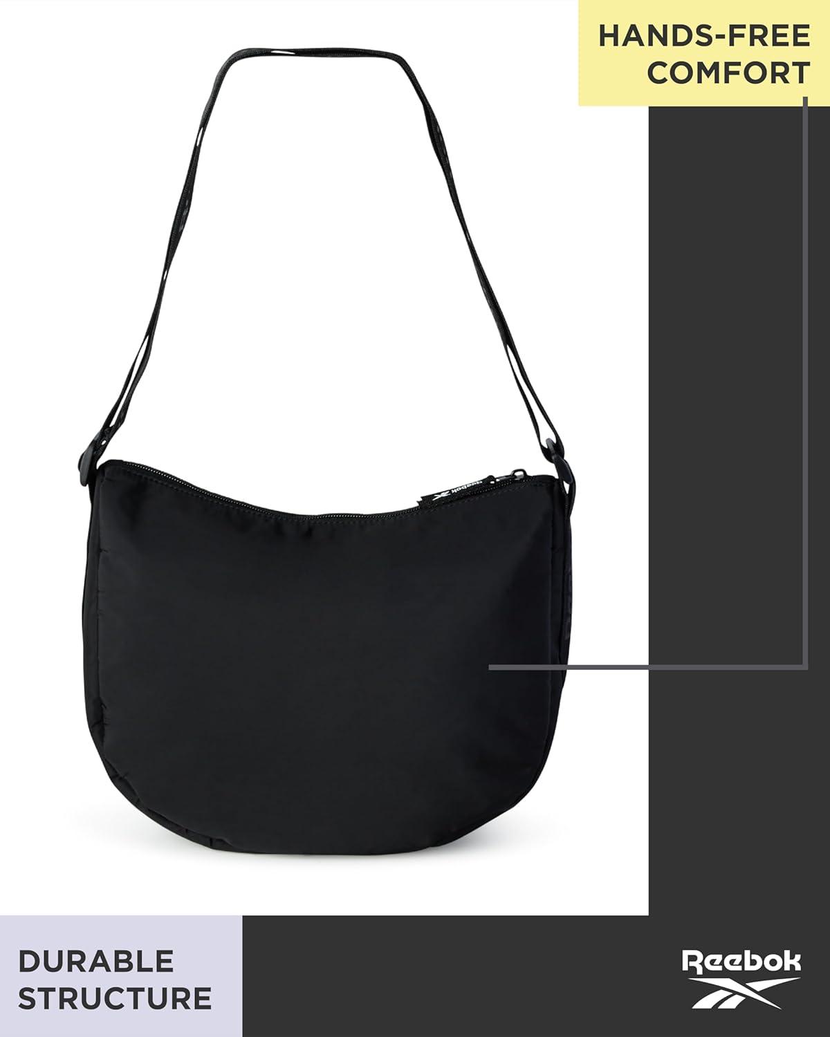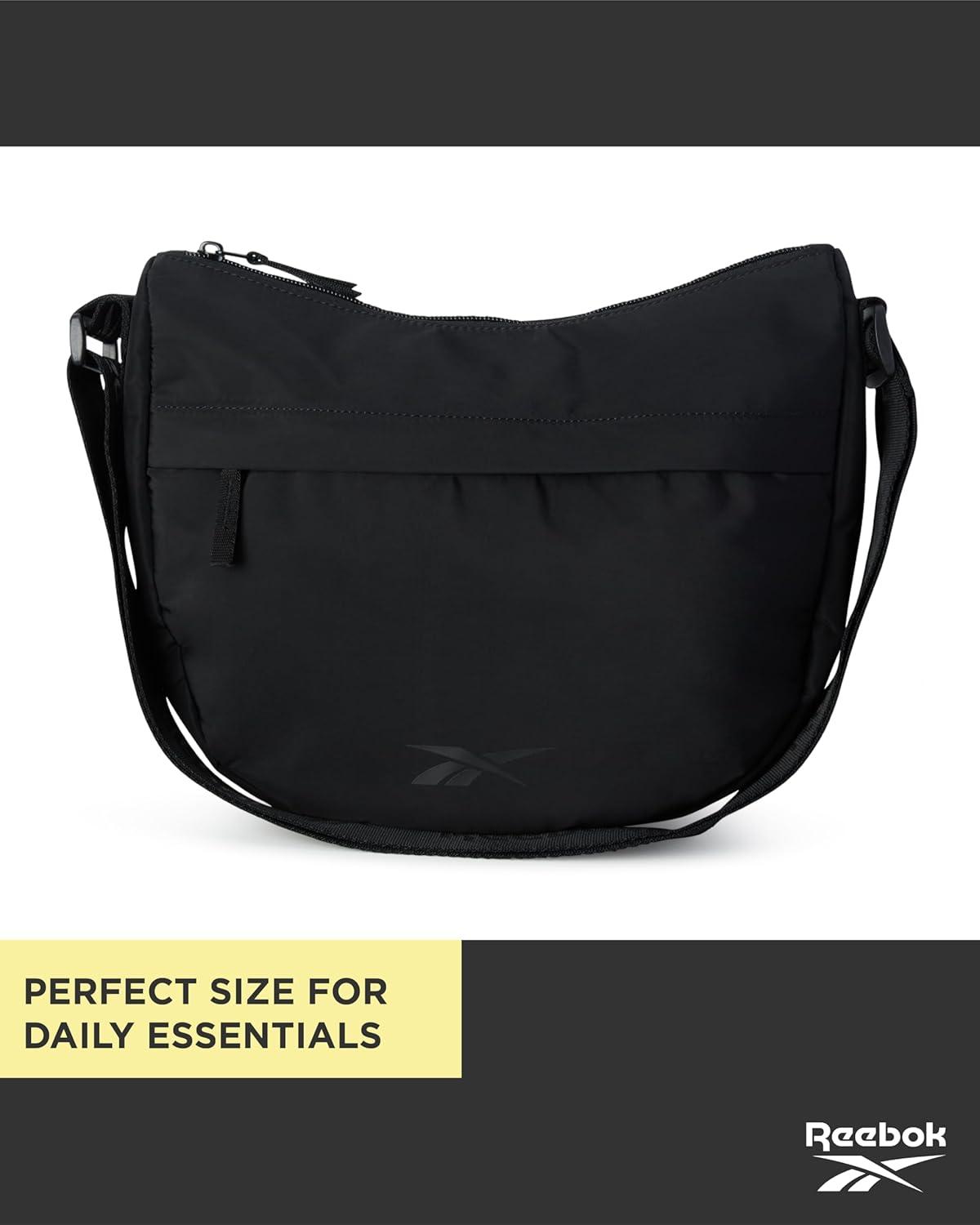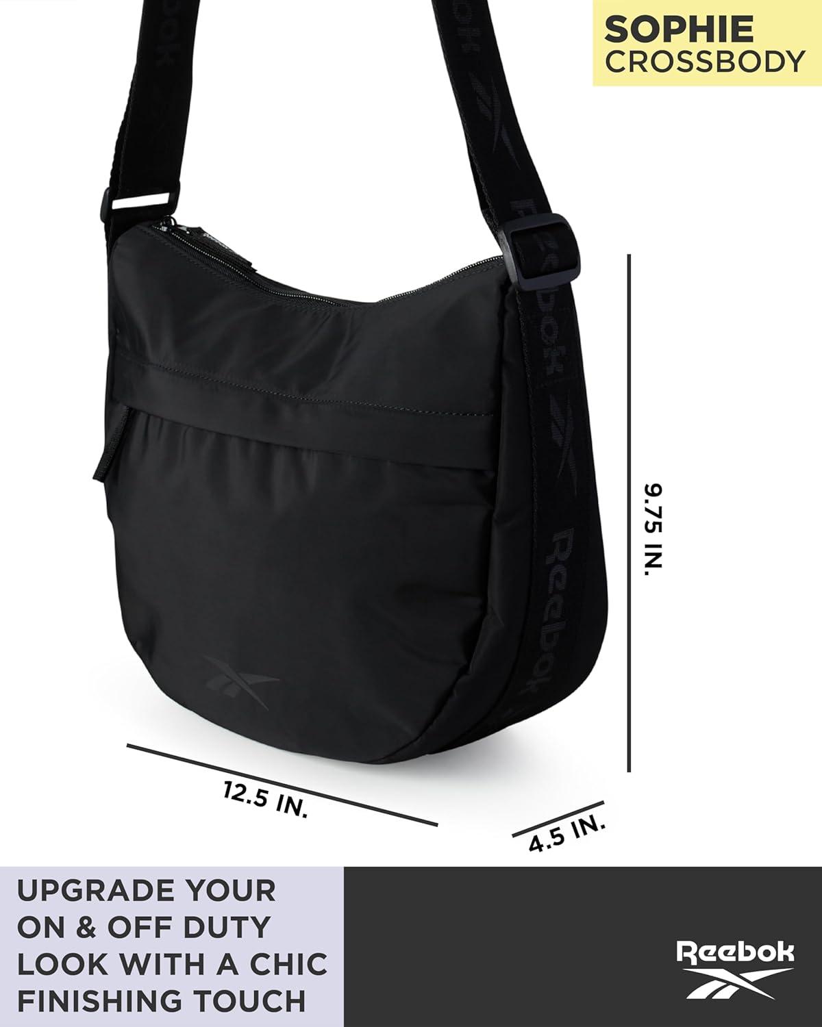 Reebok Women's Crossbody Bag - Stylish Lightweight Nylon Quilted and Non-Quilted Everyday Sling Bags for Women(Reebok Black Logo Sophie)