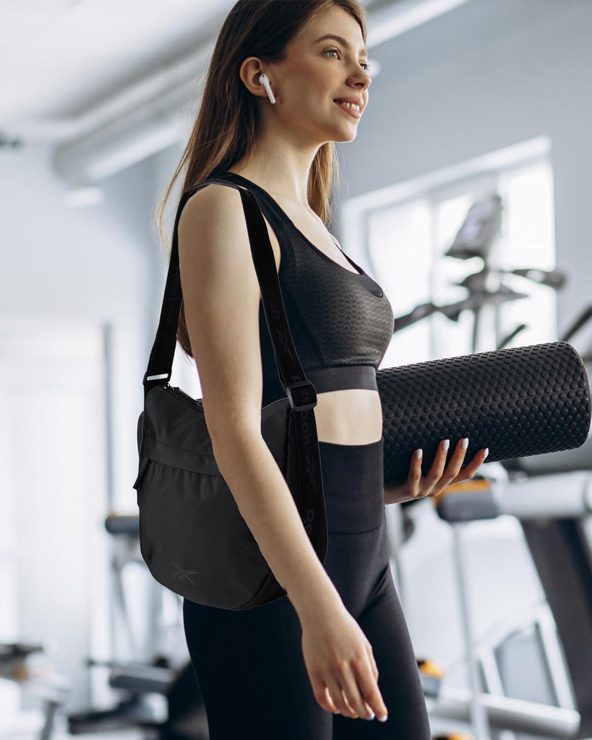 imageReebok Womens Crossbody Bag  Stylish Lightweight Nylon Quilted and NonQuilted Everyday Sling Bags for WomenReebok Black Logo Sophie