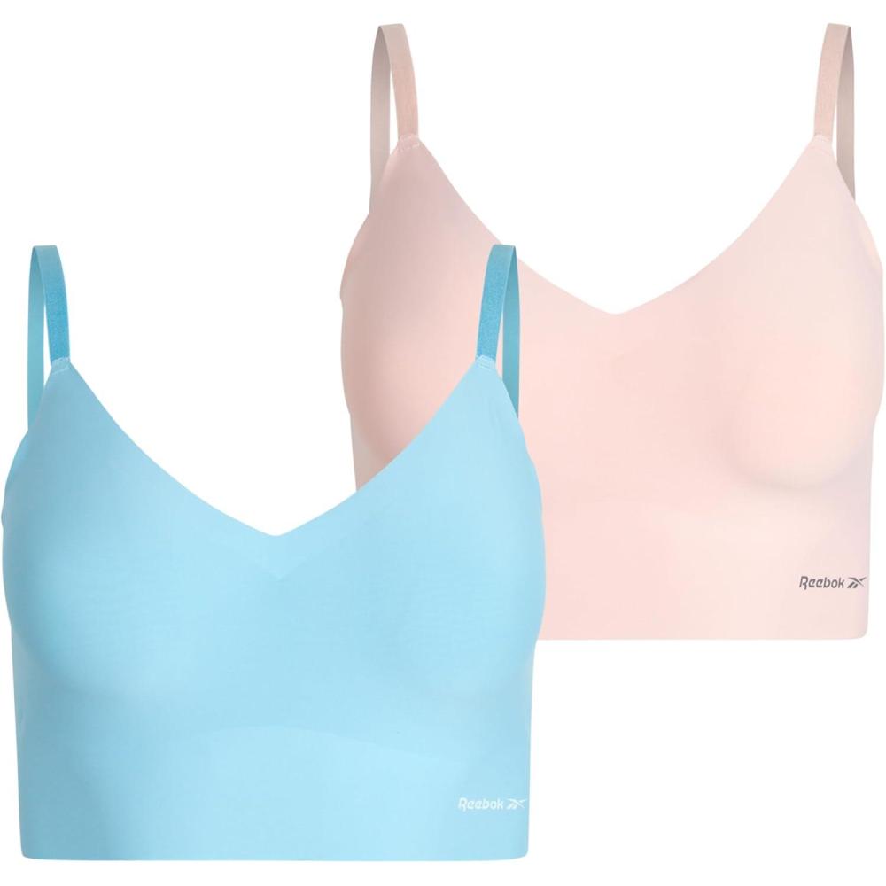 Reebok Women’s Everyday Bras – 2 Pack Soft Stretch Performance Longline Bonded Cami Bralette – Seamless Bras for Women (S-L)(Sky Bluelotus)