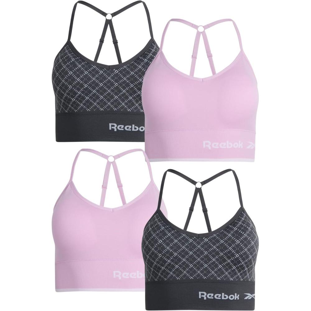 imageReebok Womens Everyday Bras  4 Pack Soft Stretch Seamless Performance Cross Back Strap Sports Bra for Women Sizes SXLSpacedyePink