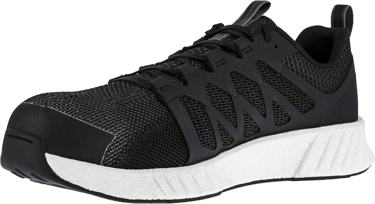 Reebok Womens Fusion Flexweave™ Work Safety Toe Athletic Work Shoe(Black and White)