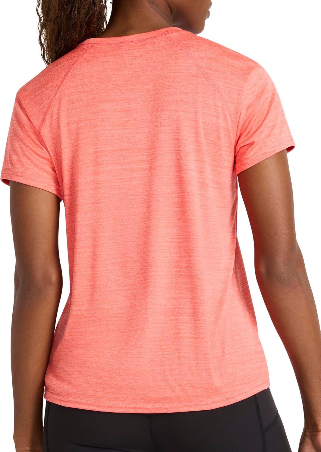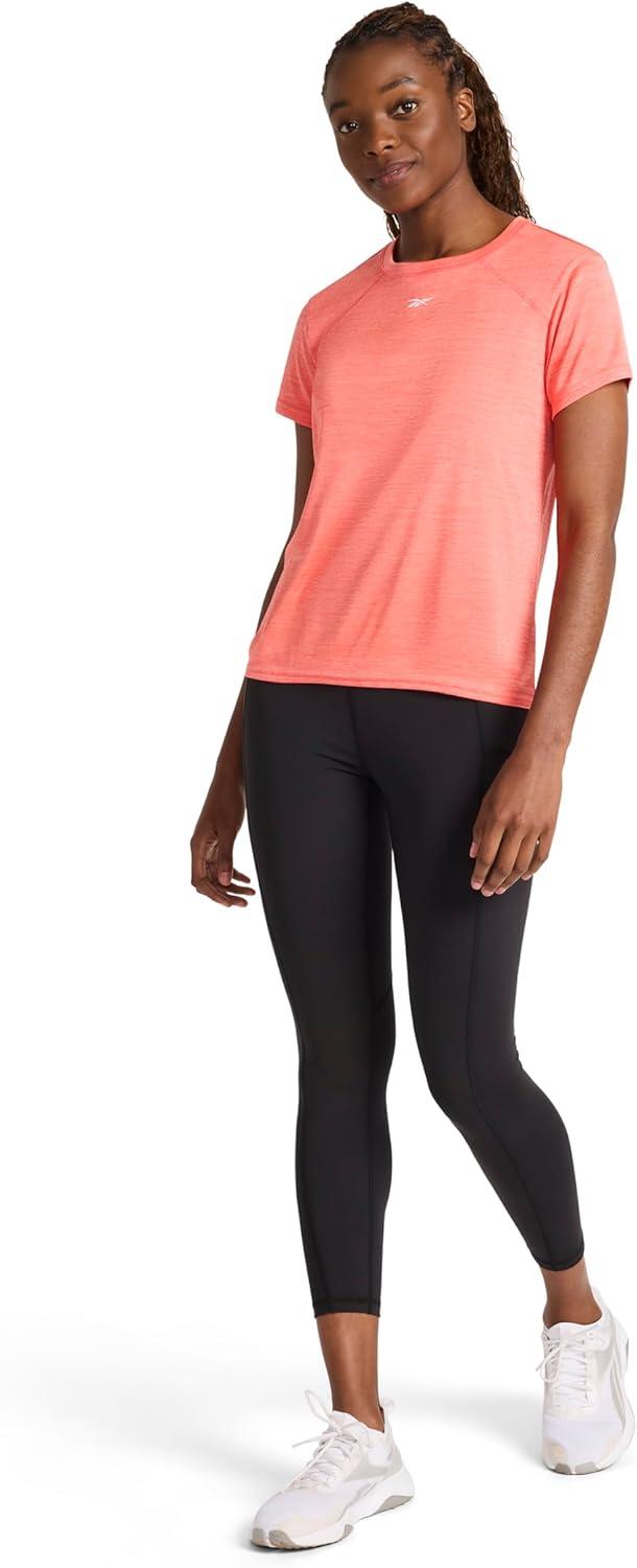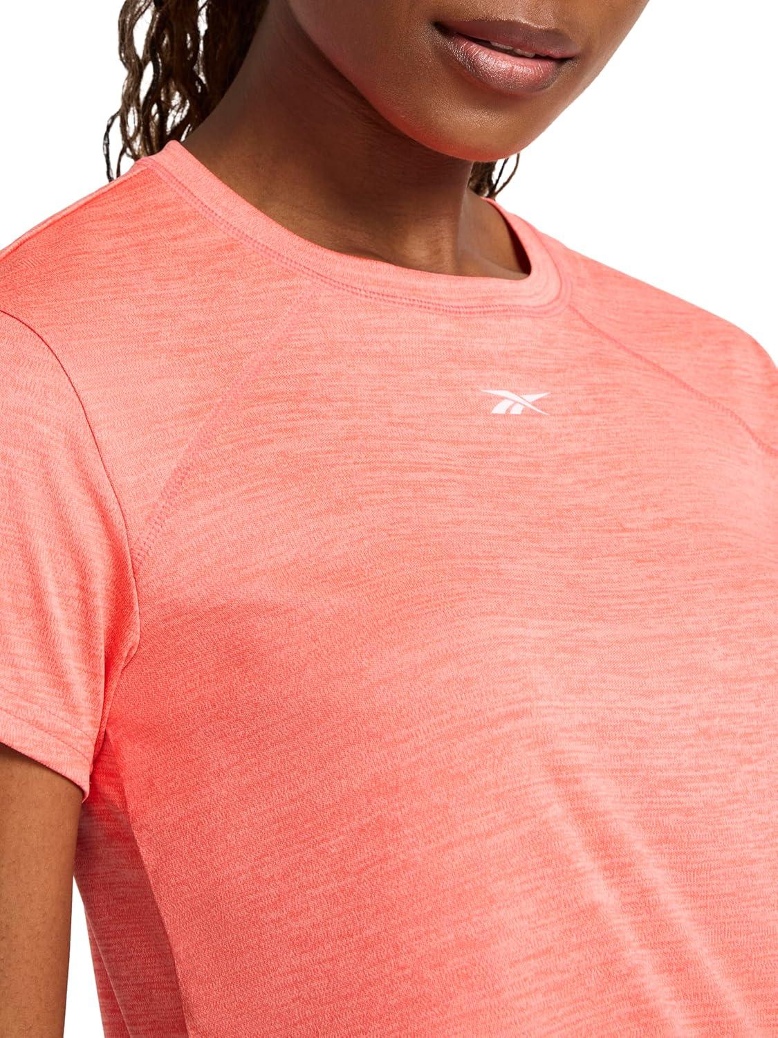 Reebok Women's Id Train Crewneck T-Shirt, Standard Fit, Lightweight Poly Jersey Fabric, Moisture-Wicking(Sunset Coral Heather)