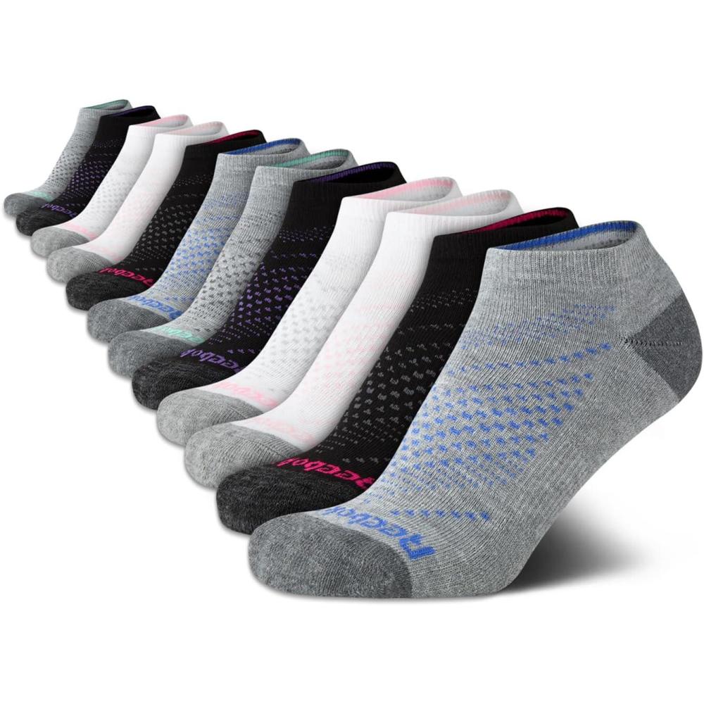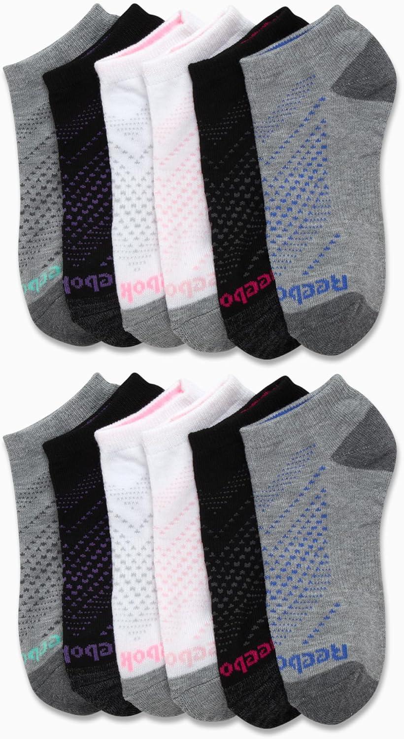 Reebok Womens No Show Socks - 12 Pack Low Cut Ankle Socks for Women - Womens Cushioned Athletic Sock (Sizes 4-10)(Black/White/Grey)