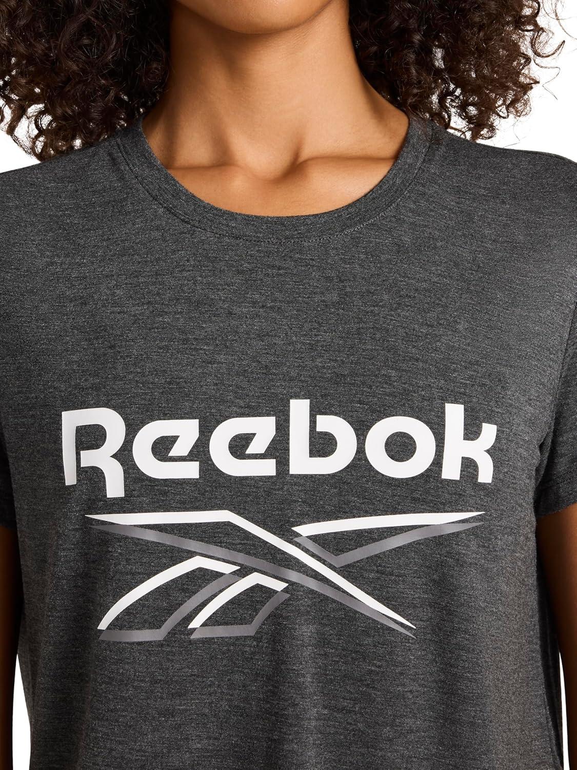 Reebok Women’s Off-Register Lock Up Glow Crewneck T-Shirt(Black Heather)