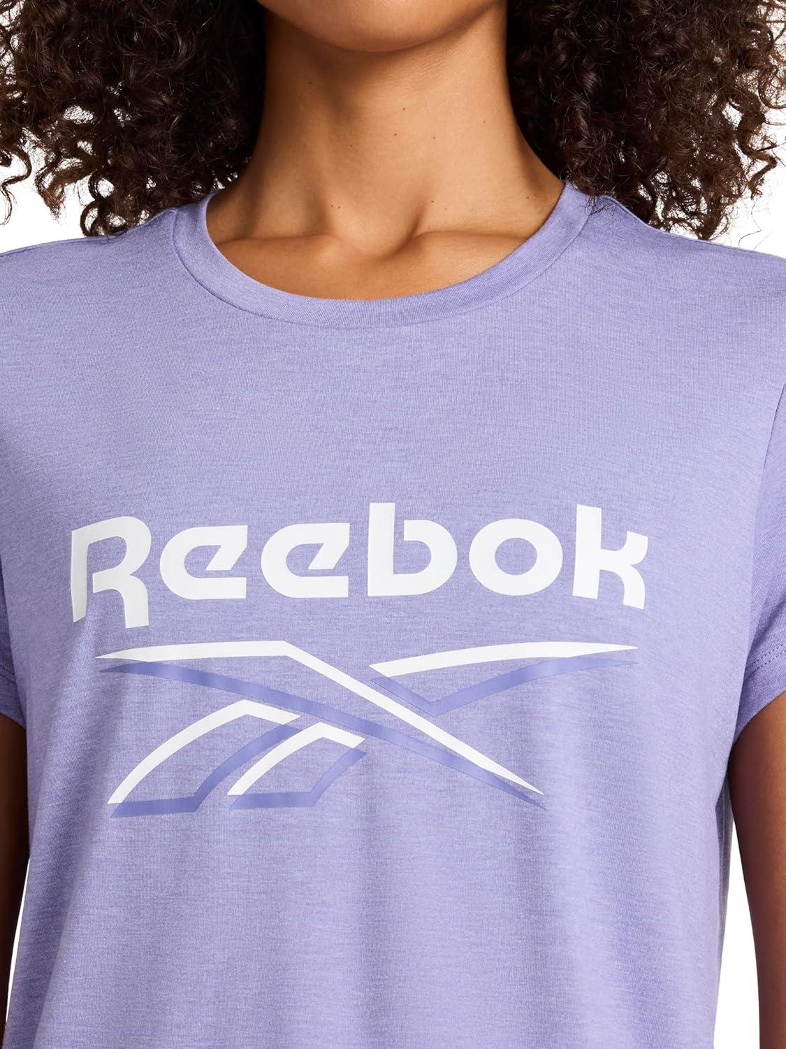 Reebok Women’s Off-Register Lock Up Glow Crewneck T-Shirt(Lavender Violet Heather)