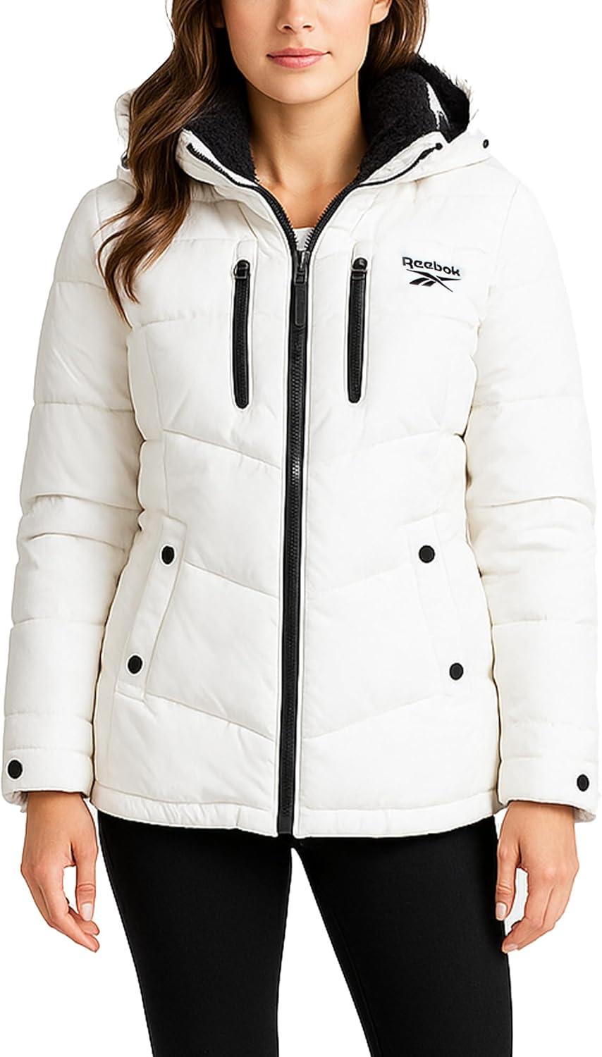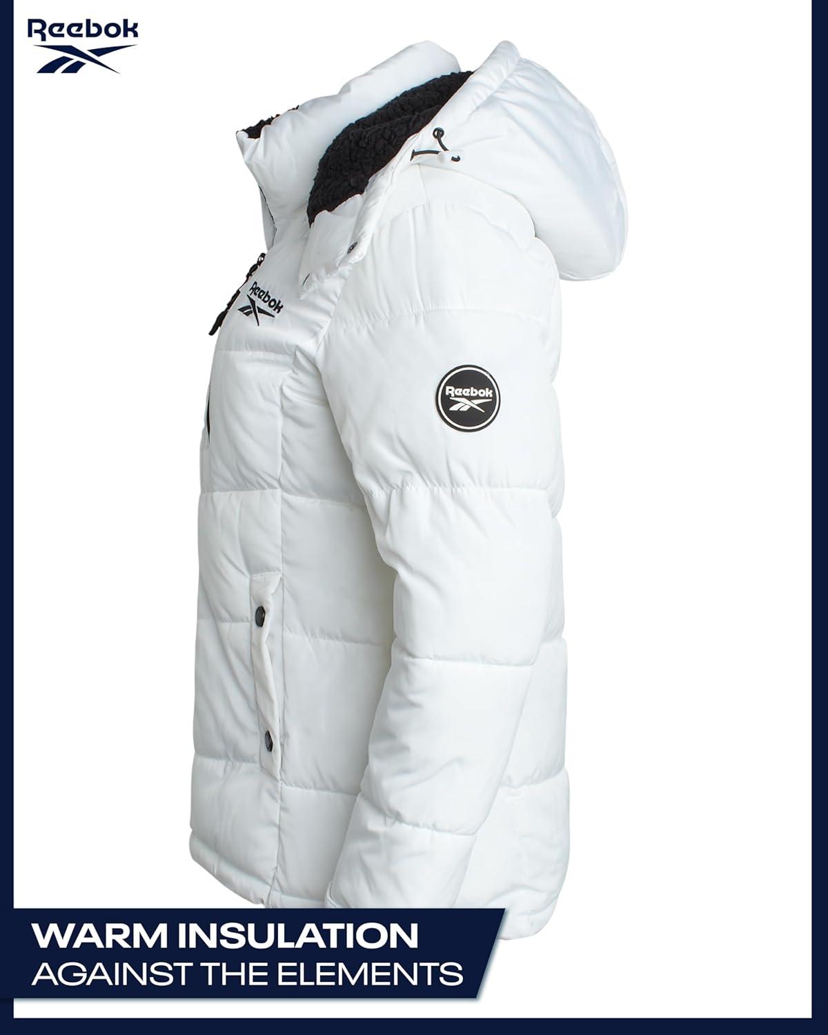 Reebok Womens Puffer Jacket - Heavyweight Puffer Coat with Faux Fur Trim Hood - Outerwear Down Winter Jackets for Women(Winter White)