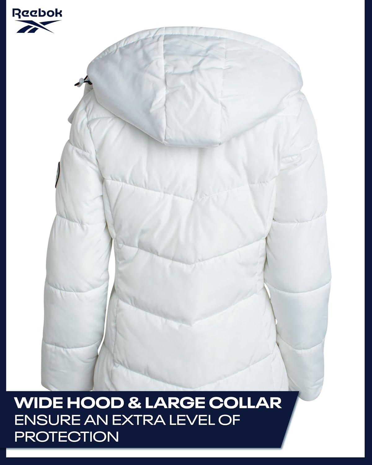 imageReebok Womens Puffer Jacket  Heavyweight Puffer Coat with Faux Fur Trim Hood  Outerwear Down Winter Jackets for WomenWinter White
