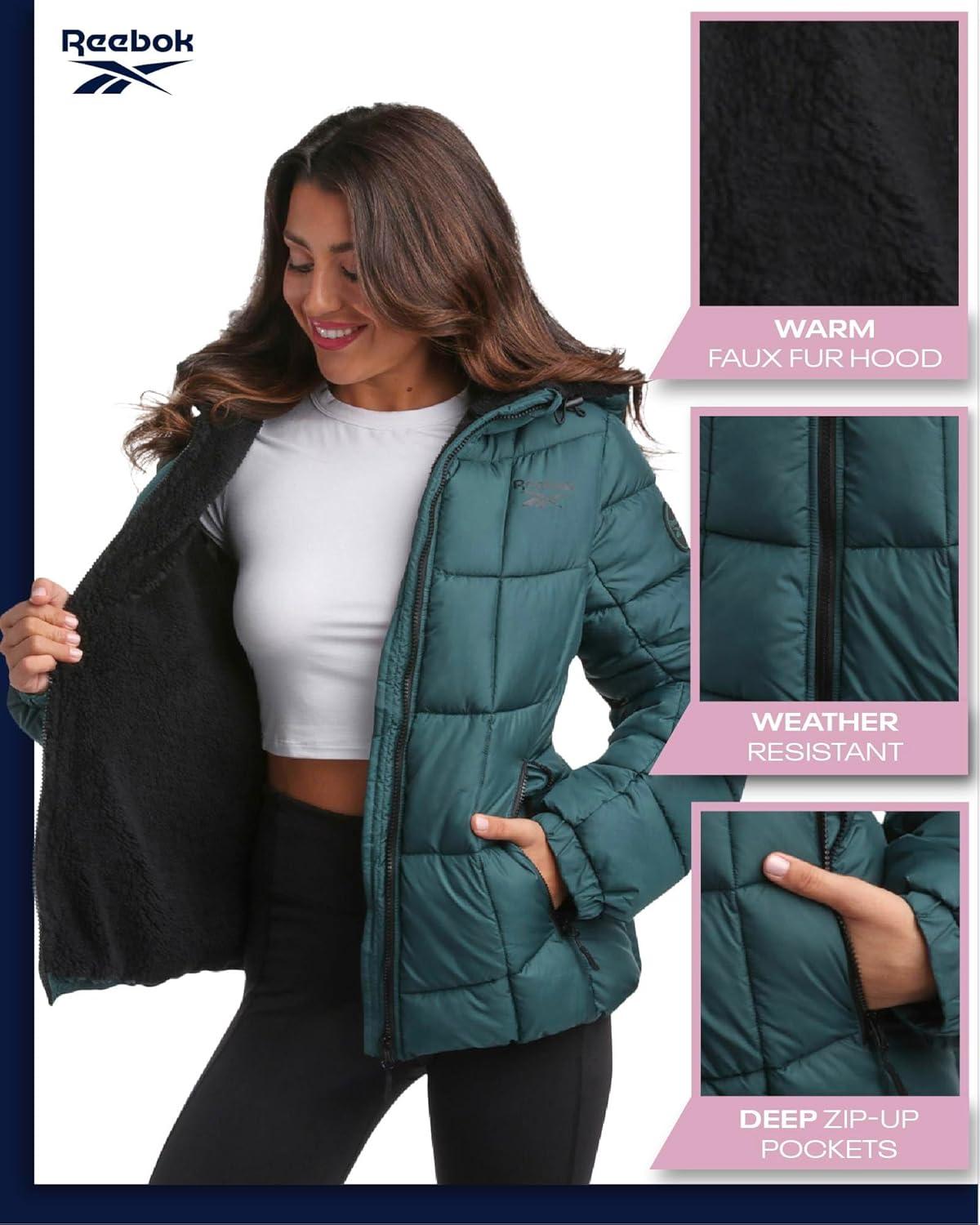 Stay warm, protected, and comfortable all season long with this Reebok Womens Puffer Jacket designed for heavy weather and everyday wear. The fully faux fur lined interior delivers plush softness and insulation, giving you the cozy feel often found in a faux fur coat women love while offering the durability expected from women’s coats built for winter. With reliable warmth similar to long winter coats for women and women’s winter coats, this style works for cold commutes, weekend adventures, and snowy conditions. It blends the practicality of womens coats and jackets with the performance you’d expect from snow jackets for women or parkas for women who need dependable weather protection. This women winter coats essential features a quilted design that feels warm the moment you zip it up, providing a flattering shape compared to a standard women coat or womens quilted jacket. The hooded interior adds even more warmth than a women's coats typically use, making it a strong choice among women coats that deliver insulation without heavy bulk. Whether you prefer long jackets for women or shorter silhouettes, this style layers easily and shields you from cold winds and icy temperatures during daily wear. Built with versatility in mind, this womens puffer coat transitions smoothly from casual outings to winter travel. The soft fill provides the insulation of a down jacket women appreciate, while the shell performs like the warmest warm jackets for women in unpredictable winter weather. As a womens winter jacket created for comfort, it offers the reliability of down coats for women with the added softness of full faux fur lining throughout the body and hood. From womens coats winter collections to women jackets that offer warmth without restricting movement, this piece adapts to changing conditions effortlessly.