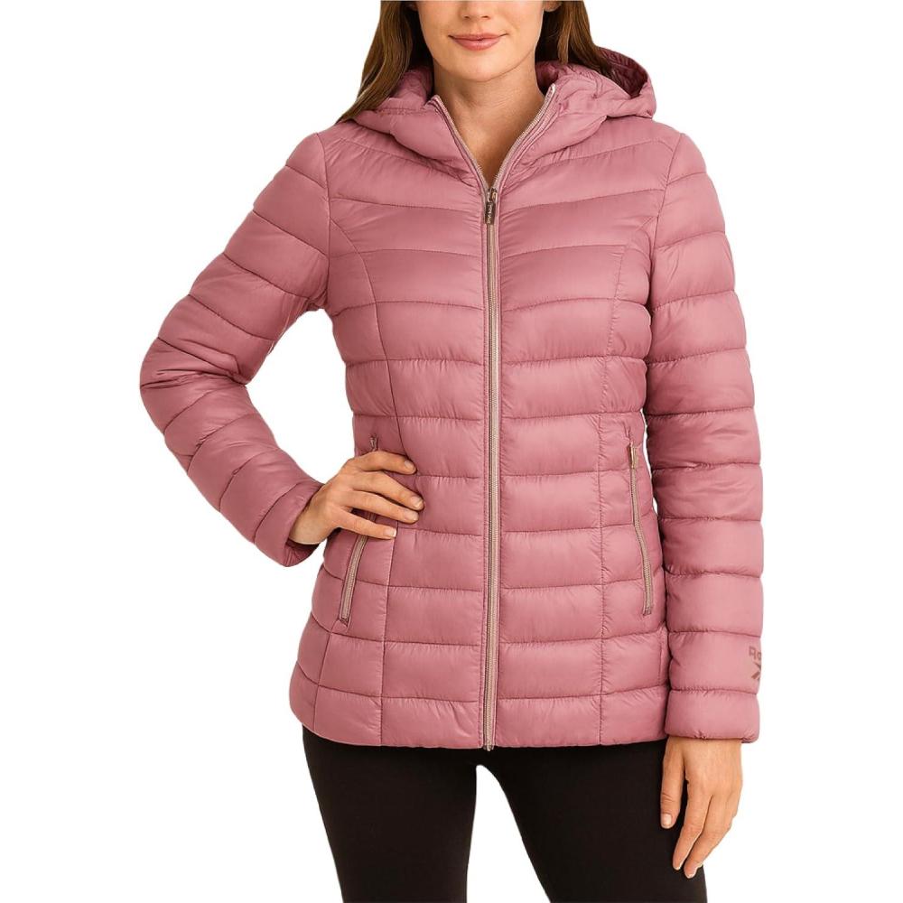 Reebok Womens Puffer Jacket – Lightweight Packable Snow Glacier Shield Quilted Winter Coat for Women with Hood & Zip Pockets(Dusty Rose)