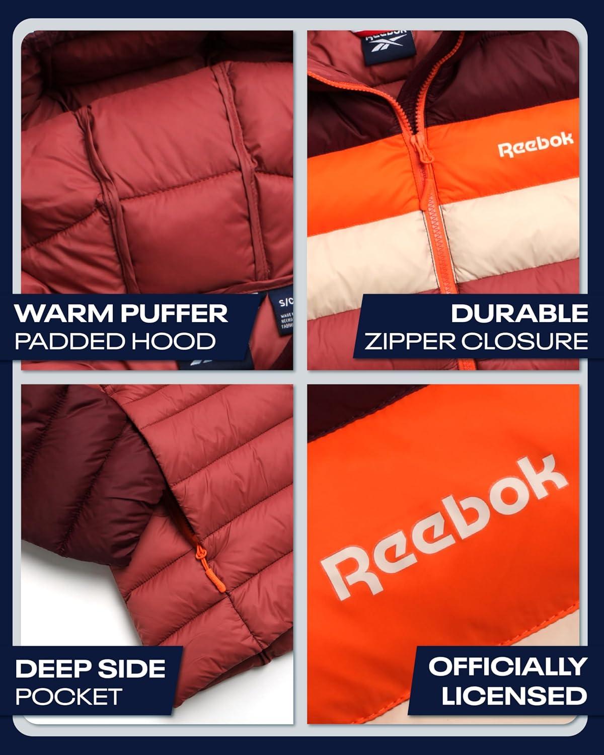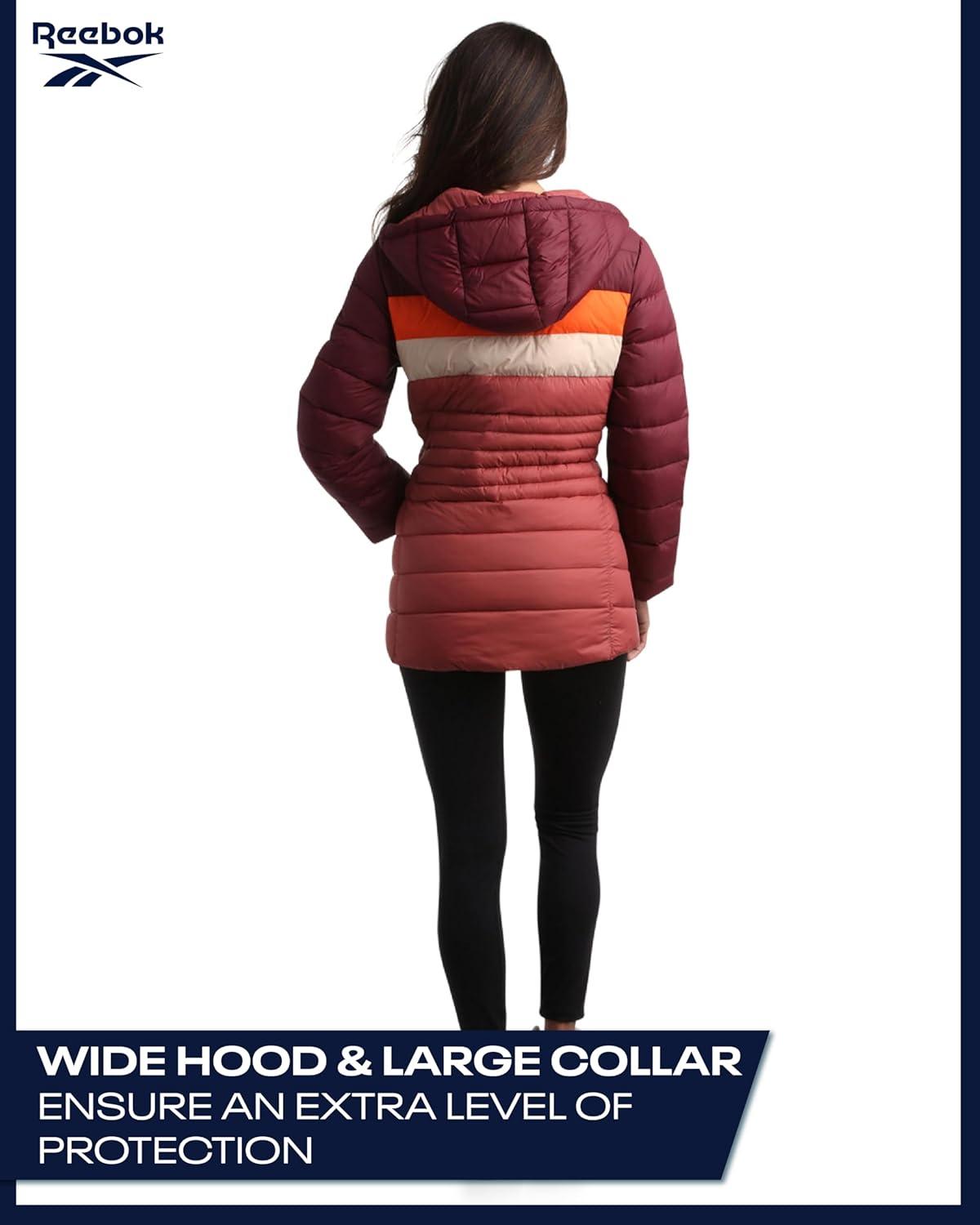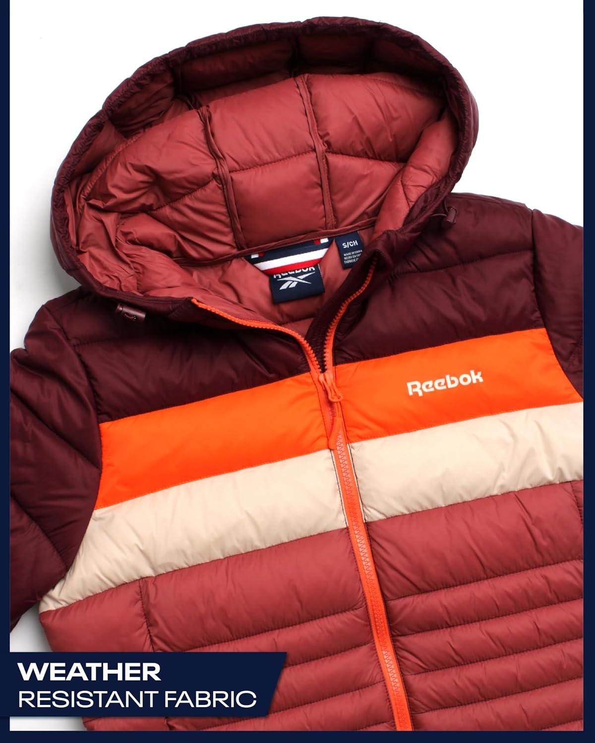Reebok Womens Puffer Jacket – Lightweight Packable Snow Glacier Shield Quilted Winter Coat for Women with Hood & Zip Pockets(Terracotta)