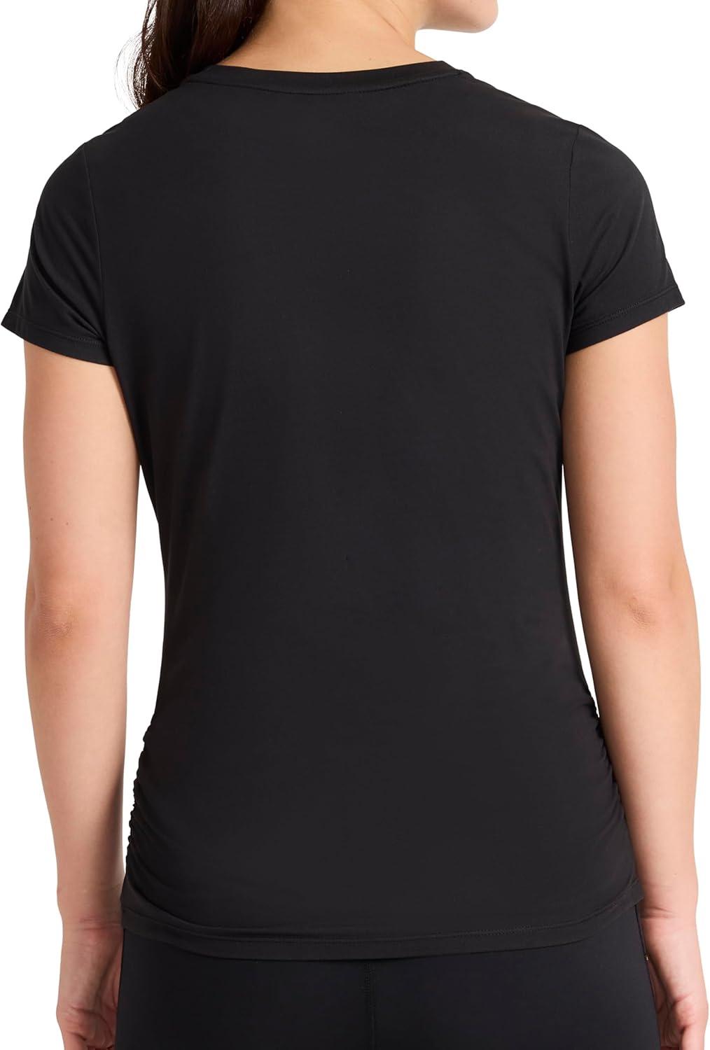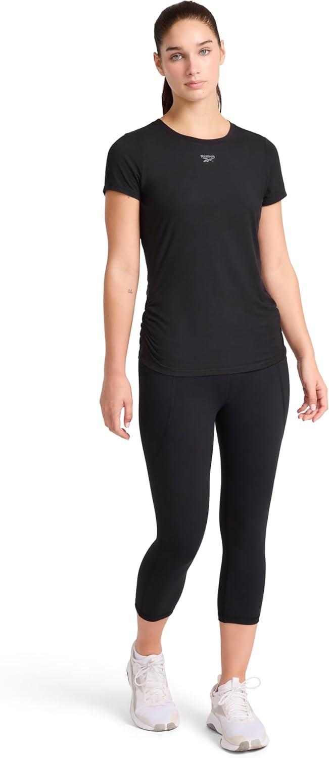 Bring a fresh twist to your rotation with the Reebok Women’s Ruched Short Sleeve Crewneck T-Shirt. Crafted from lightweight polyester-spandex fabric, it blends comfort with a form-flattering drape. The ruched detailing adds subtle texture while tonal embroidery keeps the look sleek. Perfect for pairing with leggings, denim, or street-style layers.