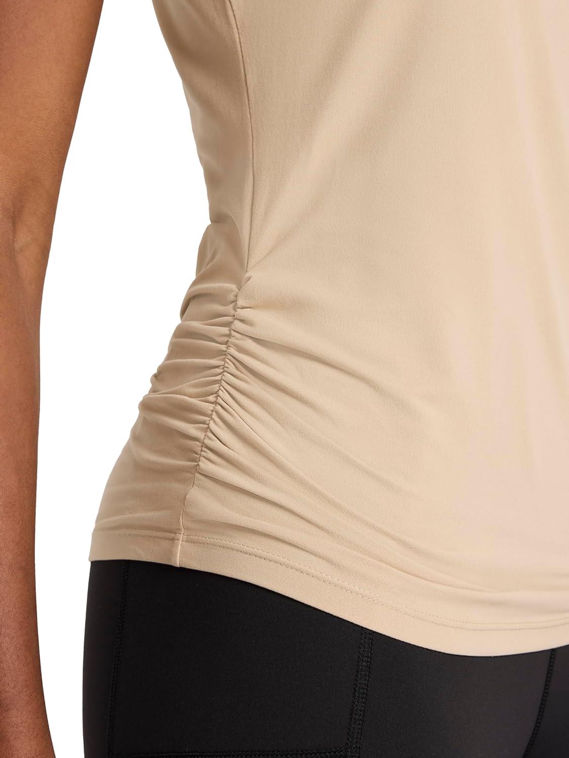 Reebok Womens Ruched Short Sleeve Crewneck T-Shirt(Humus)