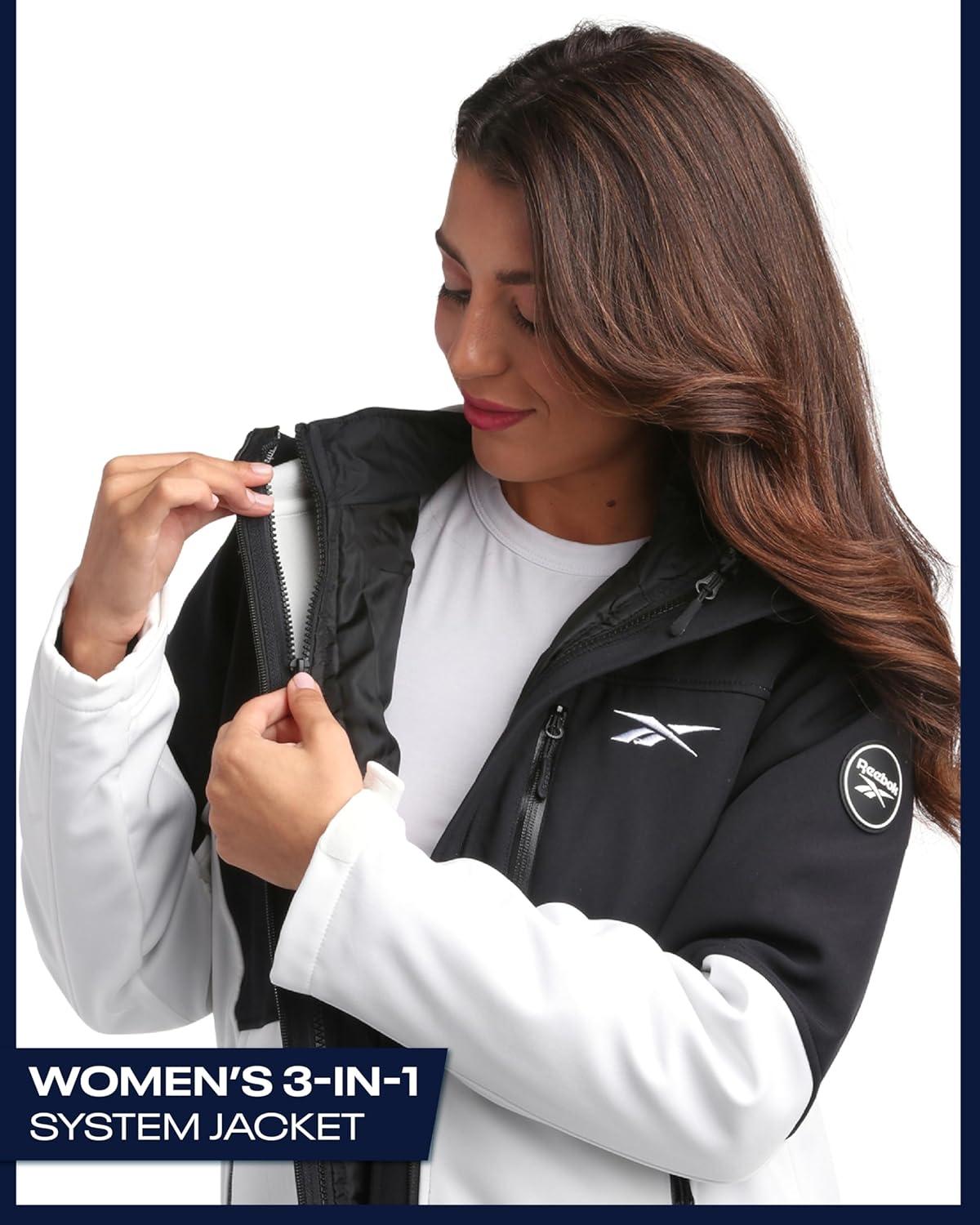 imageReebok Womens Ski Jacket  Insulated 3 in 1 Inner Puffer Jacket  Wind and Water Resistant Outerwear Winter Coats for WomenWhiteBlack