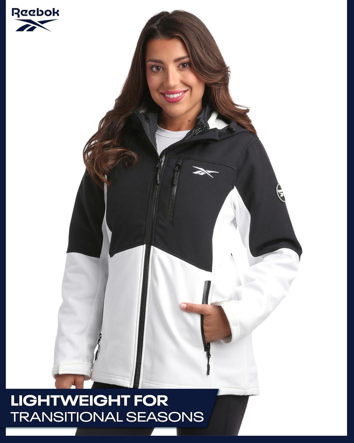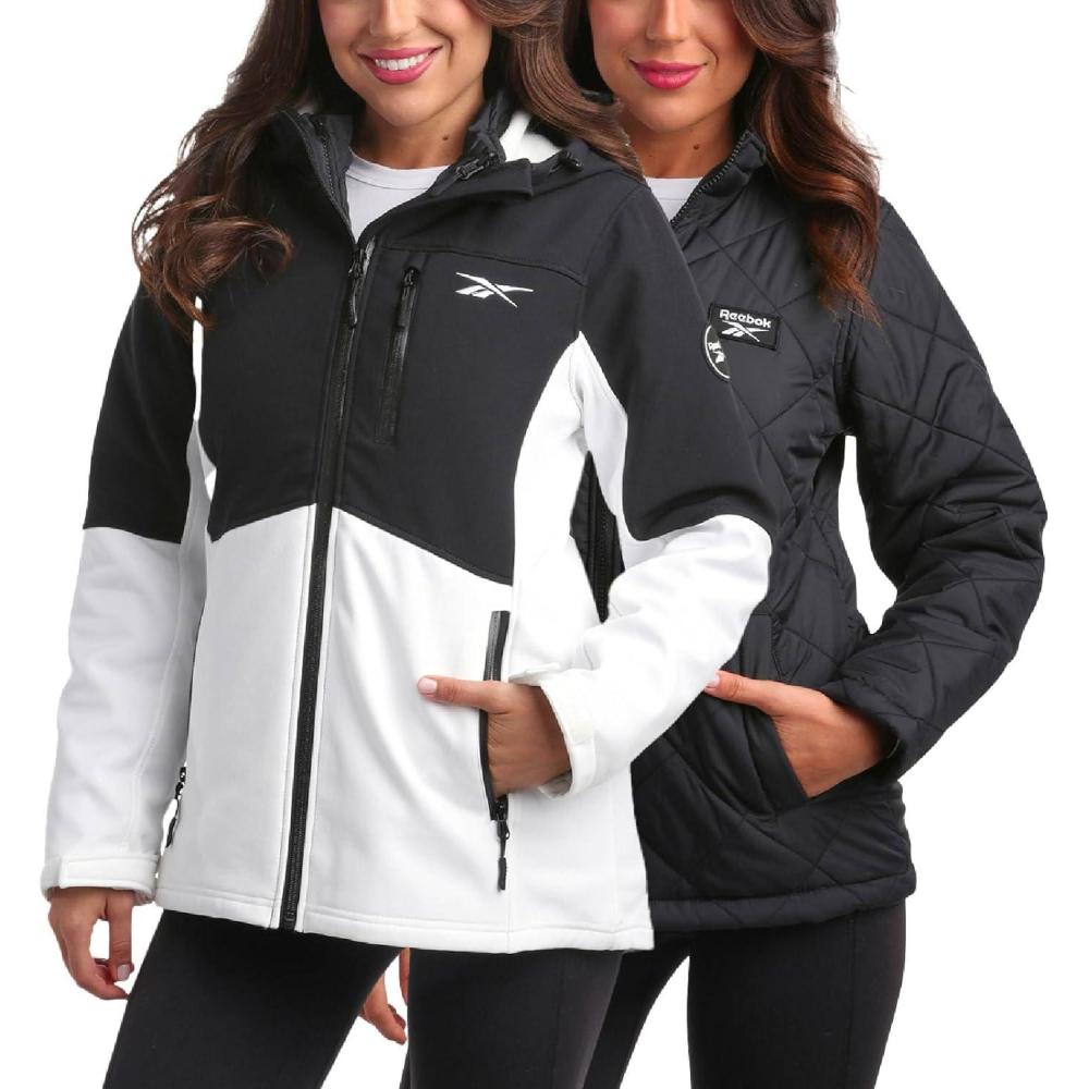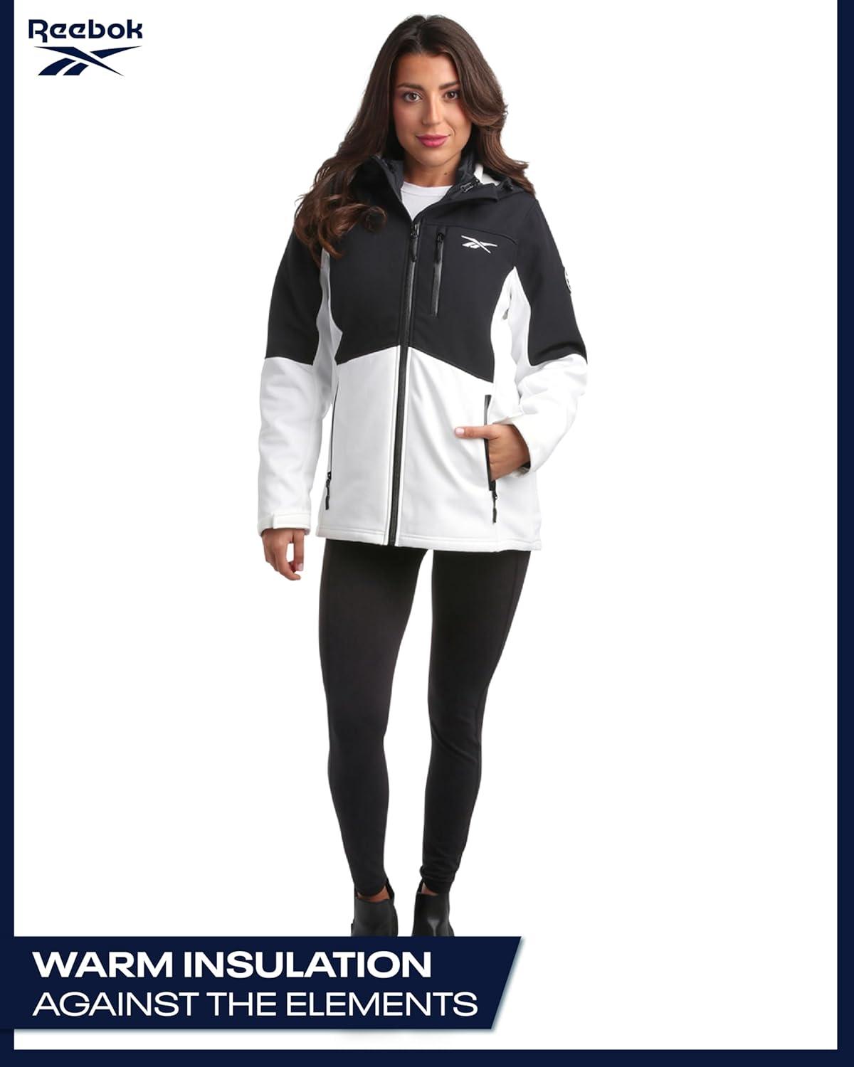 Reebok Womens Ski Jacket - Insulated 3 in 1 Inner Puffer Jacket - Wind and Water Resistant Outerwear Winter Coats for Women(White/Black)