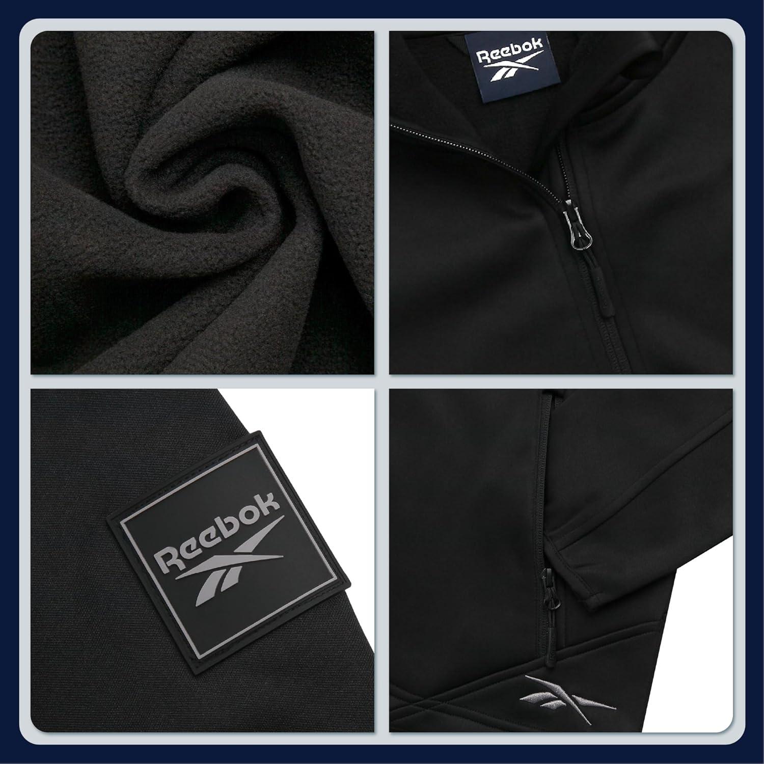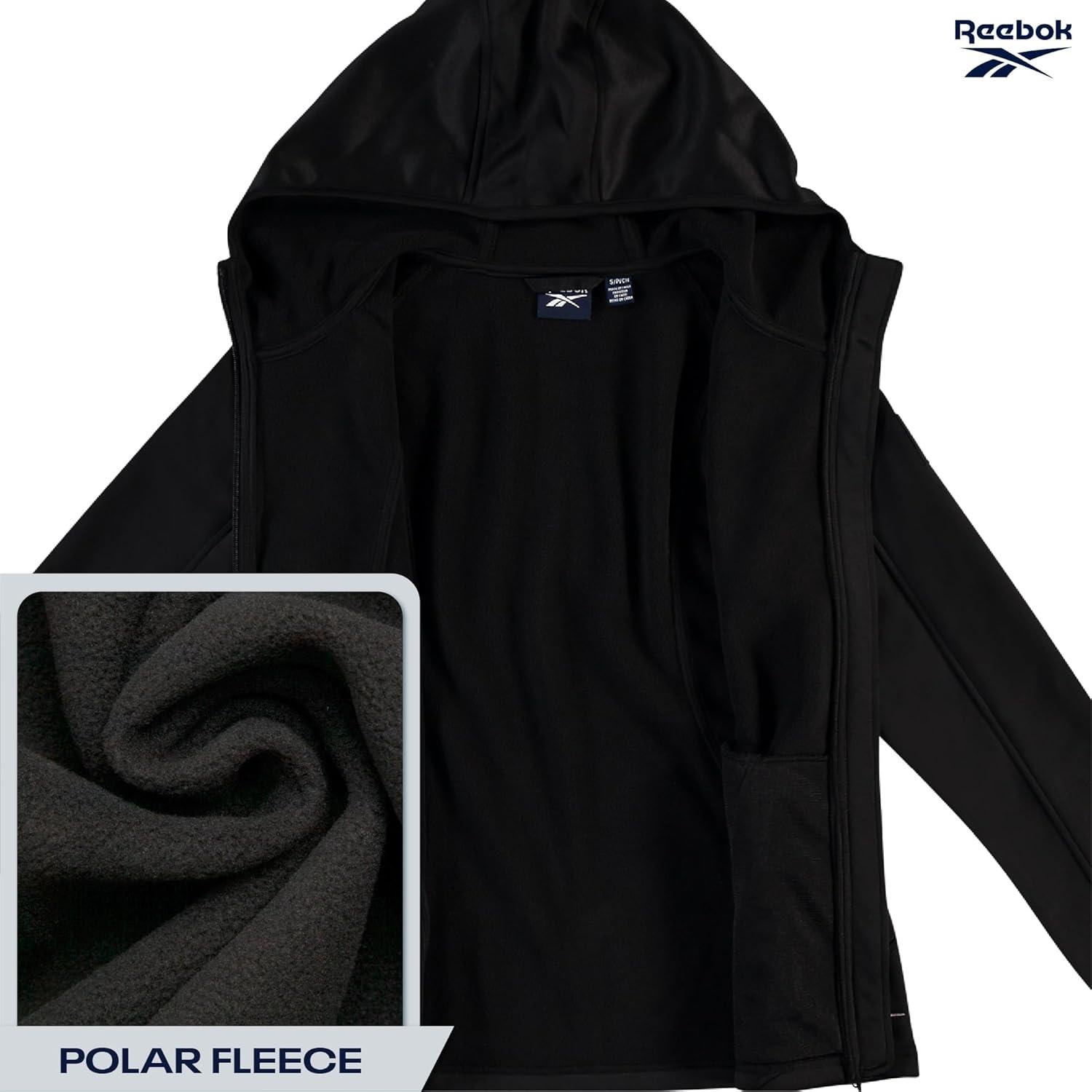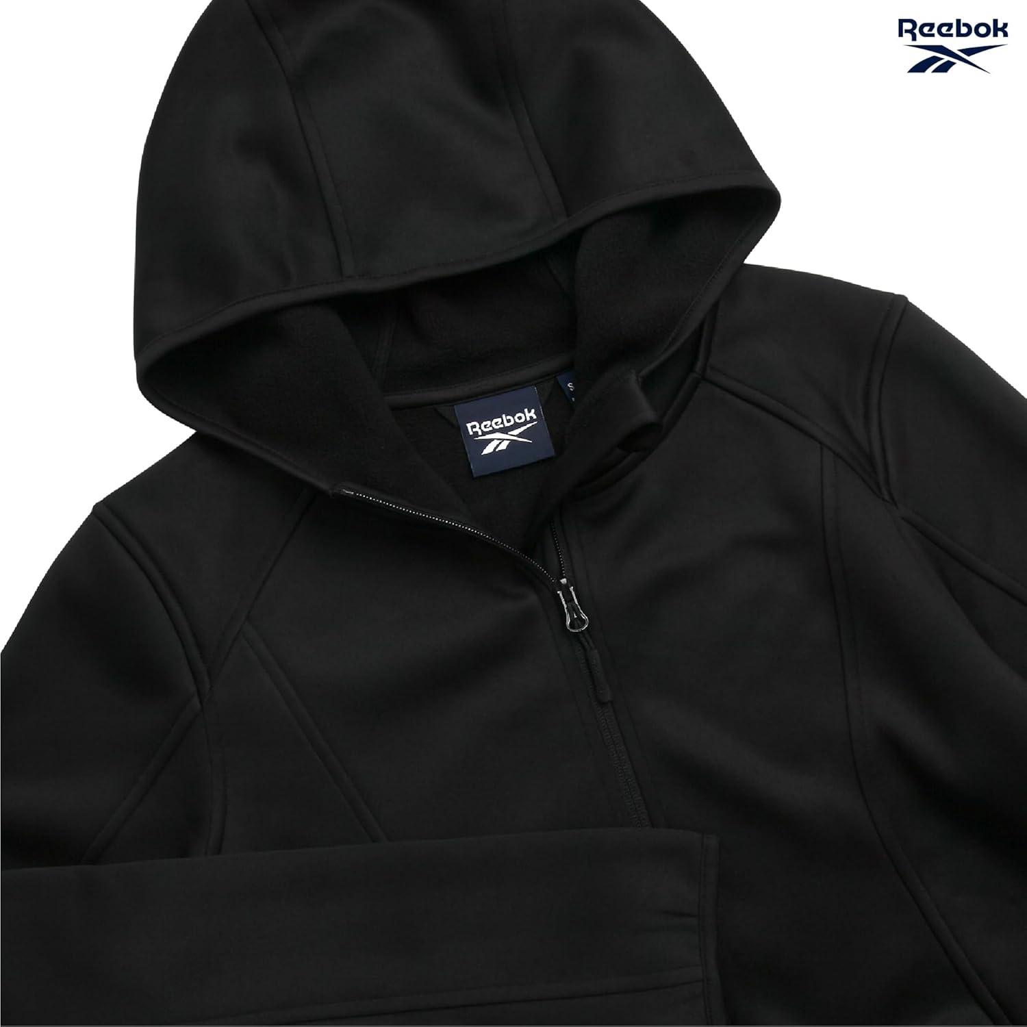 Reebok Womens Softshell Jacket – Lightweight Water & Windproof Warm Hooded Fleece Lined Womens Jacket for Gym Running Hiking(Black Ink)