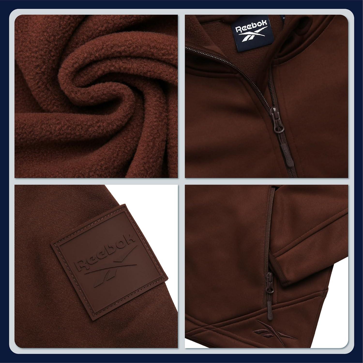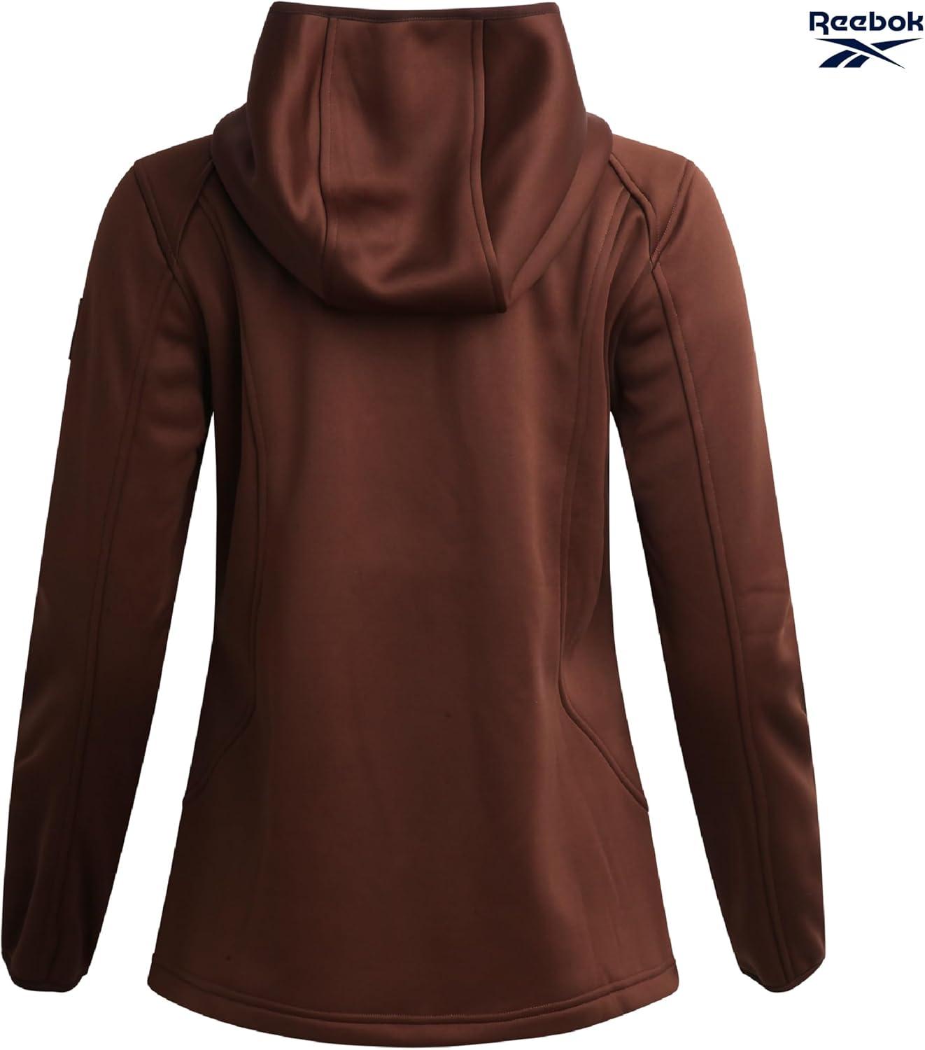 Reebok Womens Softshell Jacket – Lightweight Water & Windproof Warm Hooded Fleece Lined Womens Jacket for Gym Running Hiking(Cognac)