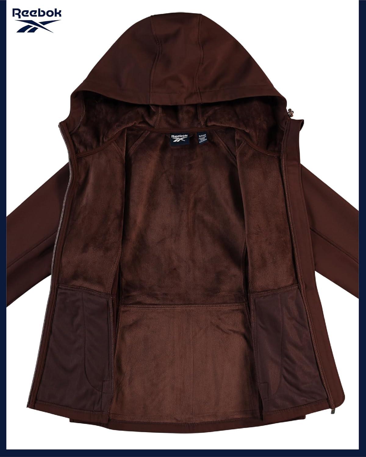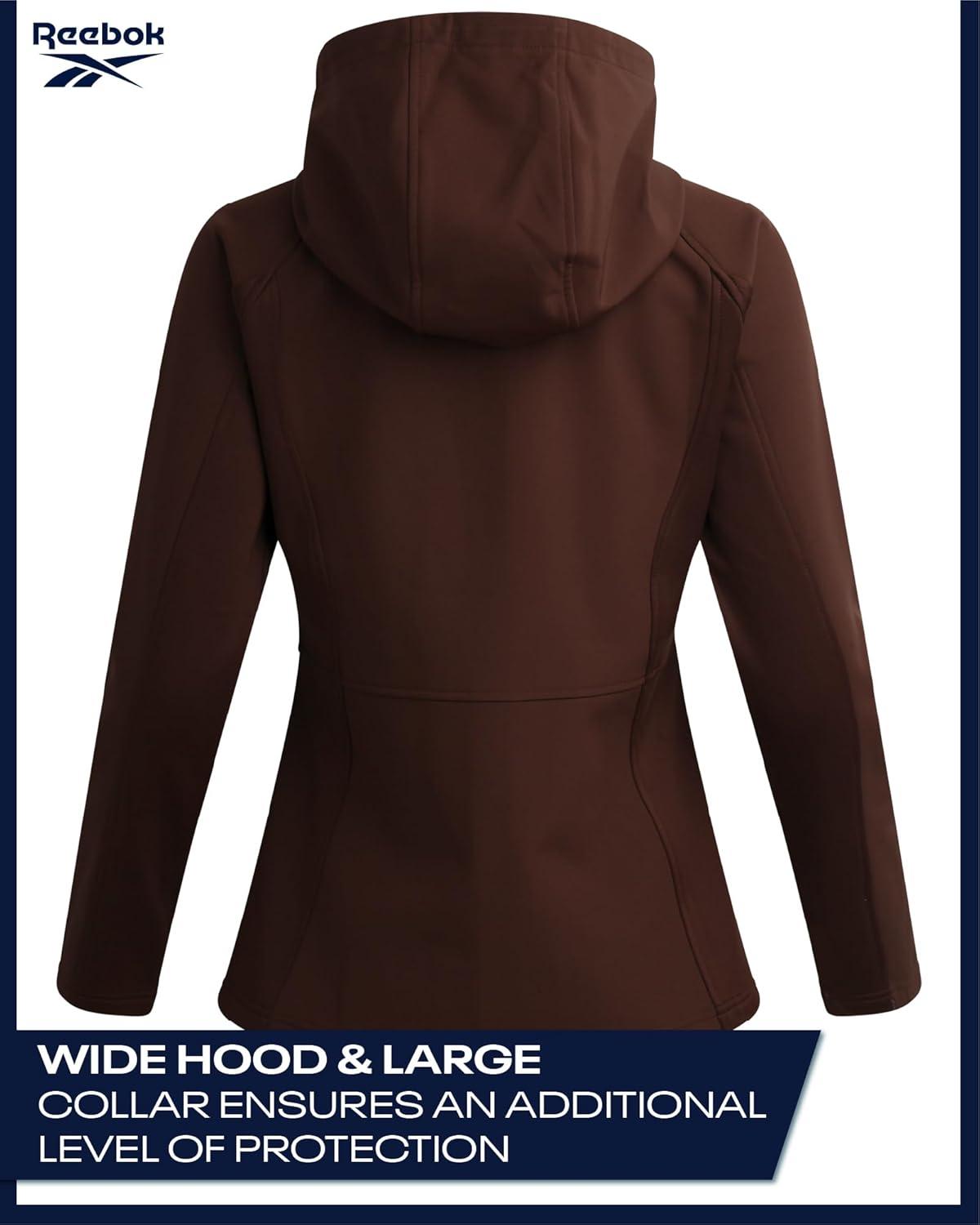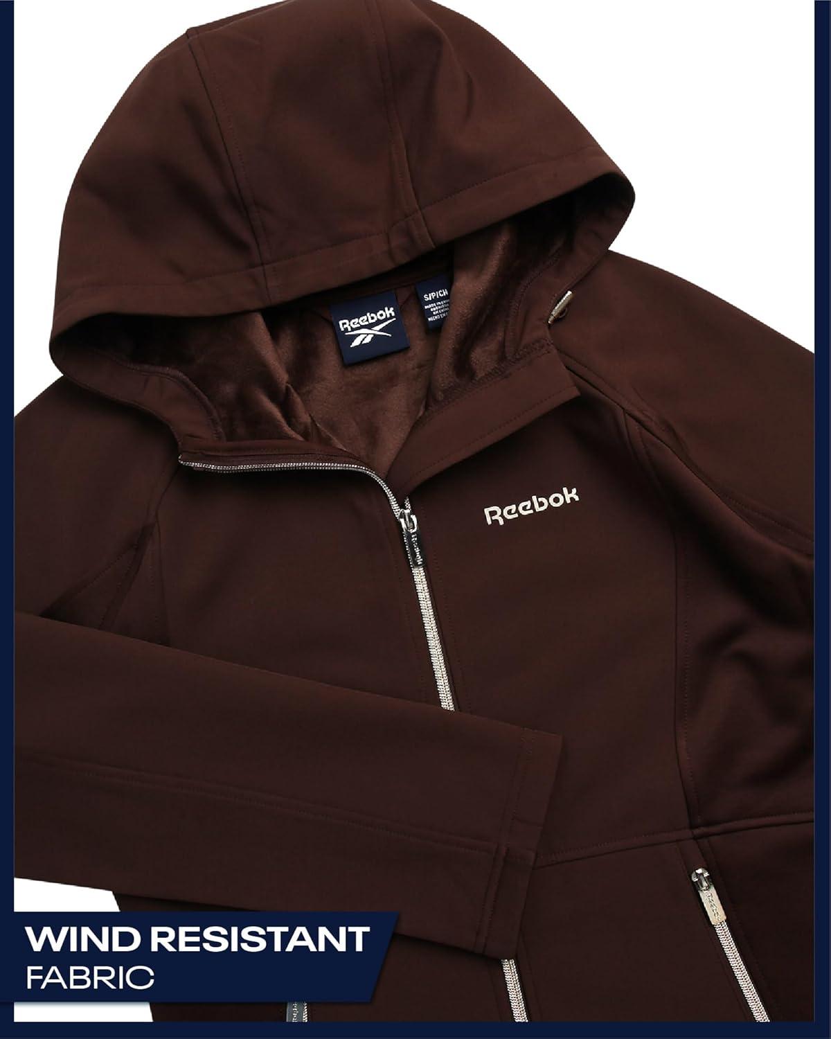Reebok Womens Softshell Jacket - Super Soft Woven Wind Resistant Womens Fleece Jacket for Golf Running Gym Workout Hiking(Truffle)