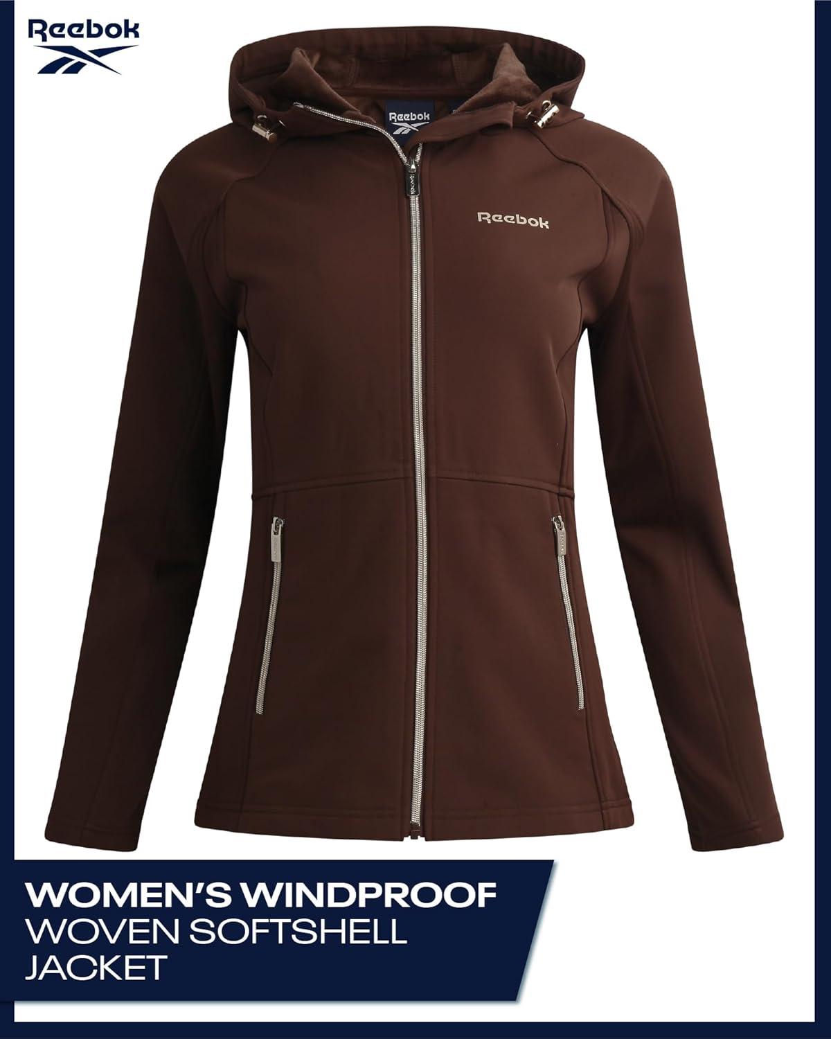 Reebok Womens Softshell Jacket – Super Soft Woven Wind Resistant Womens Fleece Jacket for Golf Running Gym Workout Hiking(Truffle)