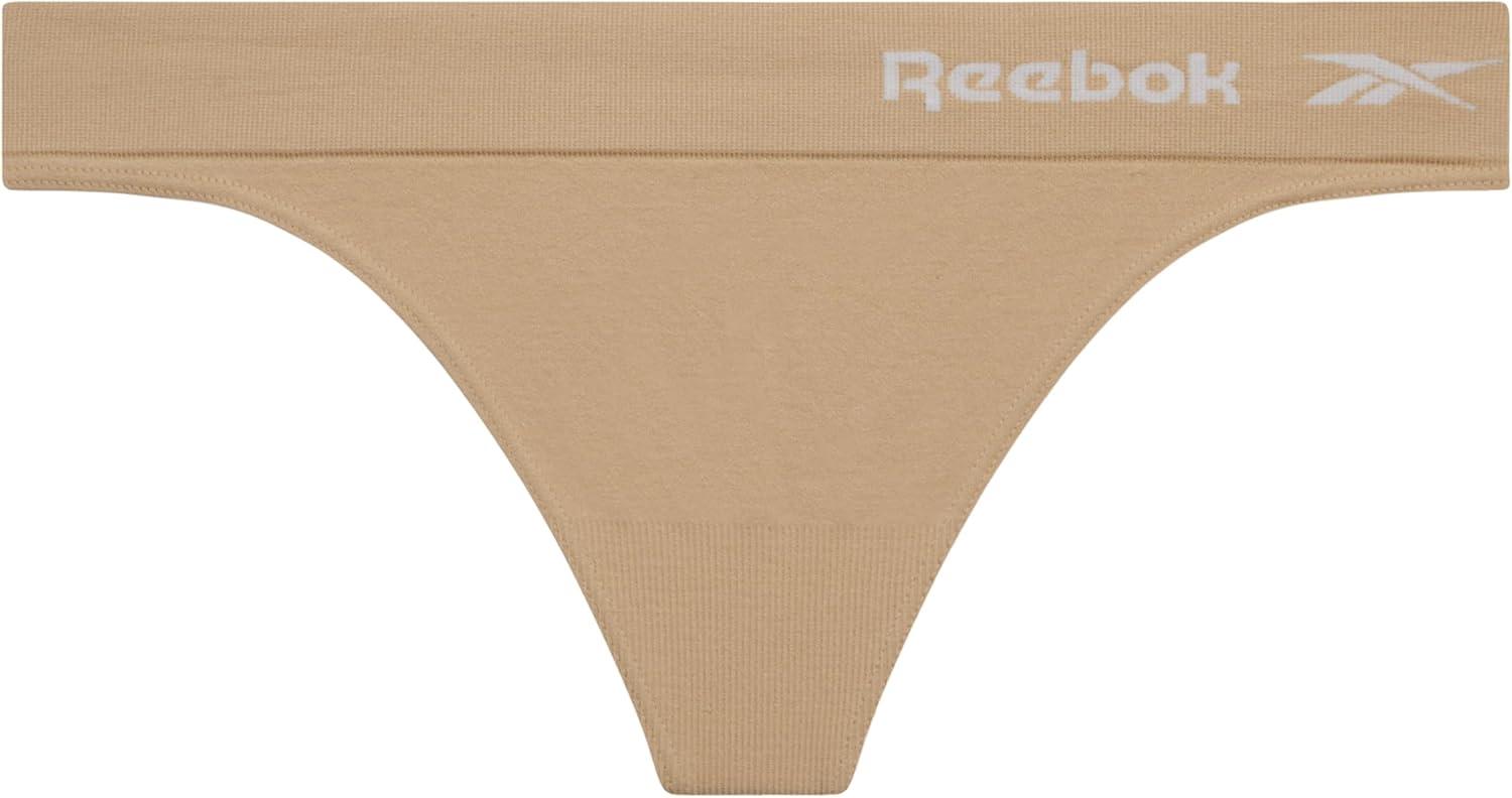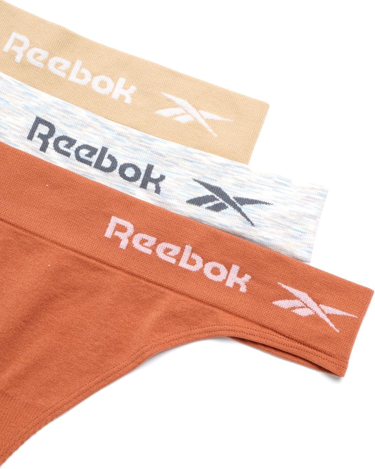 Reebok Women’s Thongs – 3 Pack Performance Seamless Thongs for Women Sexy Panties – Breathable Underwear for Women (S-XL)(Tan/Light Grey Spacedye/Rust)
