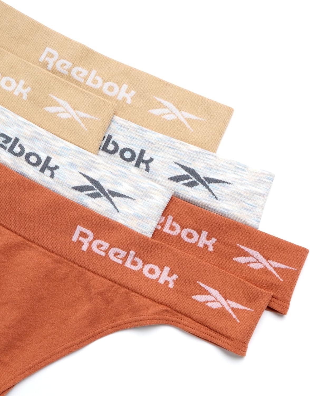 Reebok Women’s Thongs – 6 Pack Performance Seamless Thongs for Women Sexy Panties – Breathable Underwear for Women (S-XL)(Tan/Light Grey Spacedye/Rust)