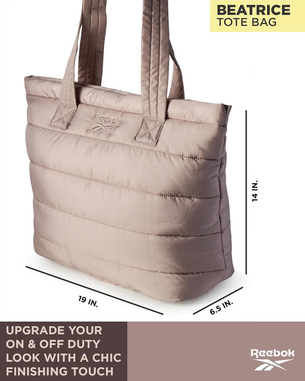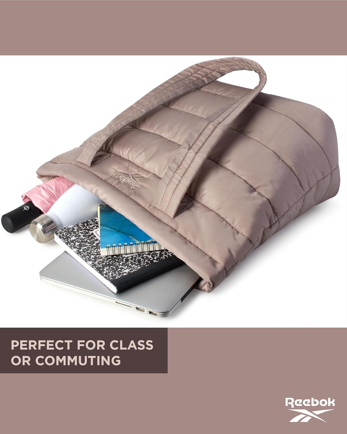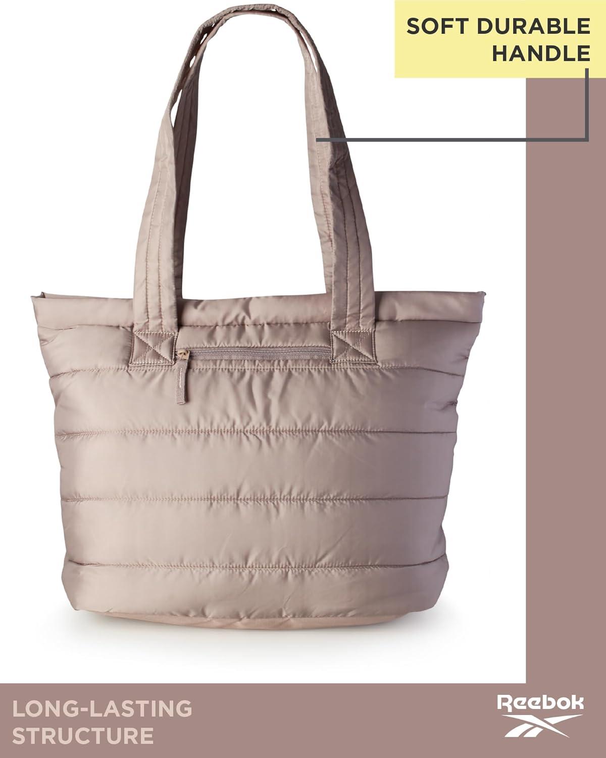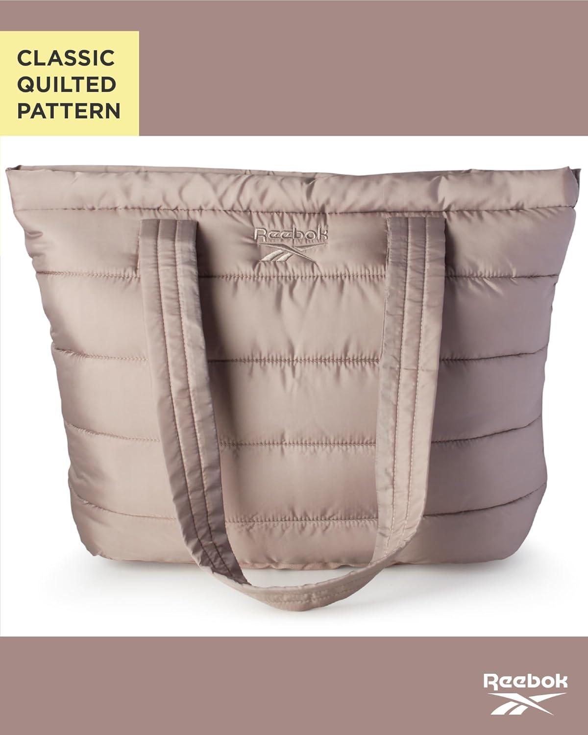 Reebok Womens Tote Bag - Lightweight Quilted Carry On Puffer Gym Bag for Women for Work, Travel, and Everyday Use(Mocha Beatrice)