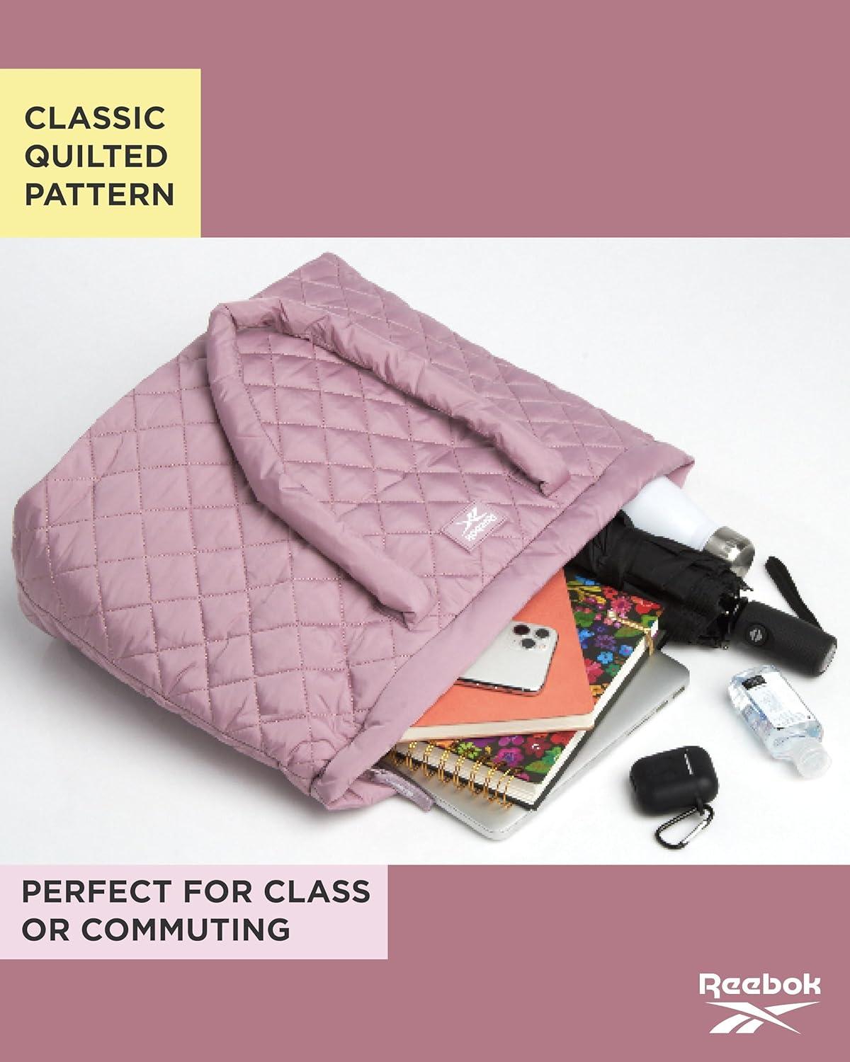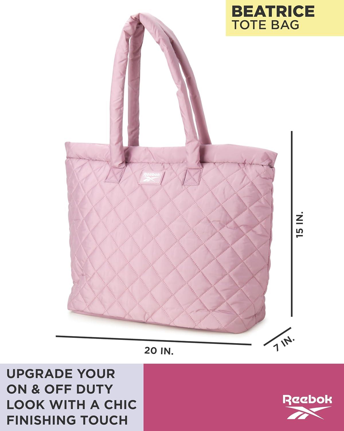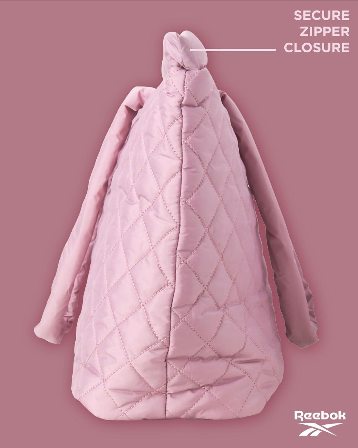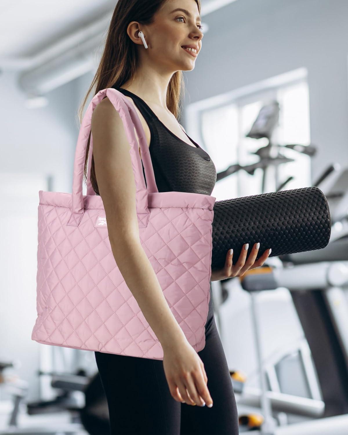 Reebok Womens Tote Bag – Lightweight Quilted Carry On Puffer Gym Bag for Women for Work, Travel, and Everyday Use(Rose Beatrice)