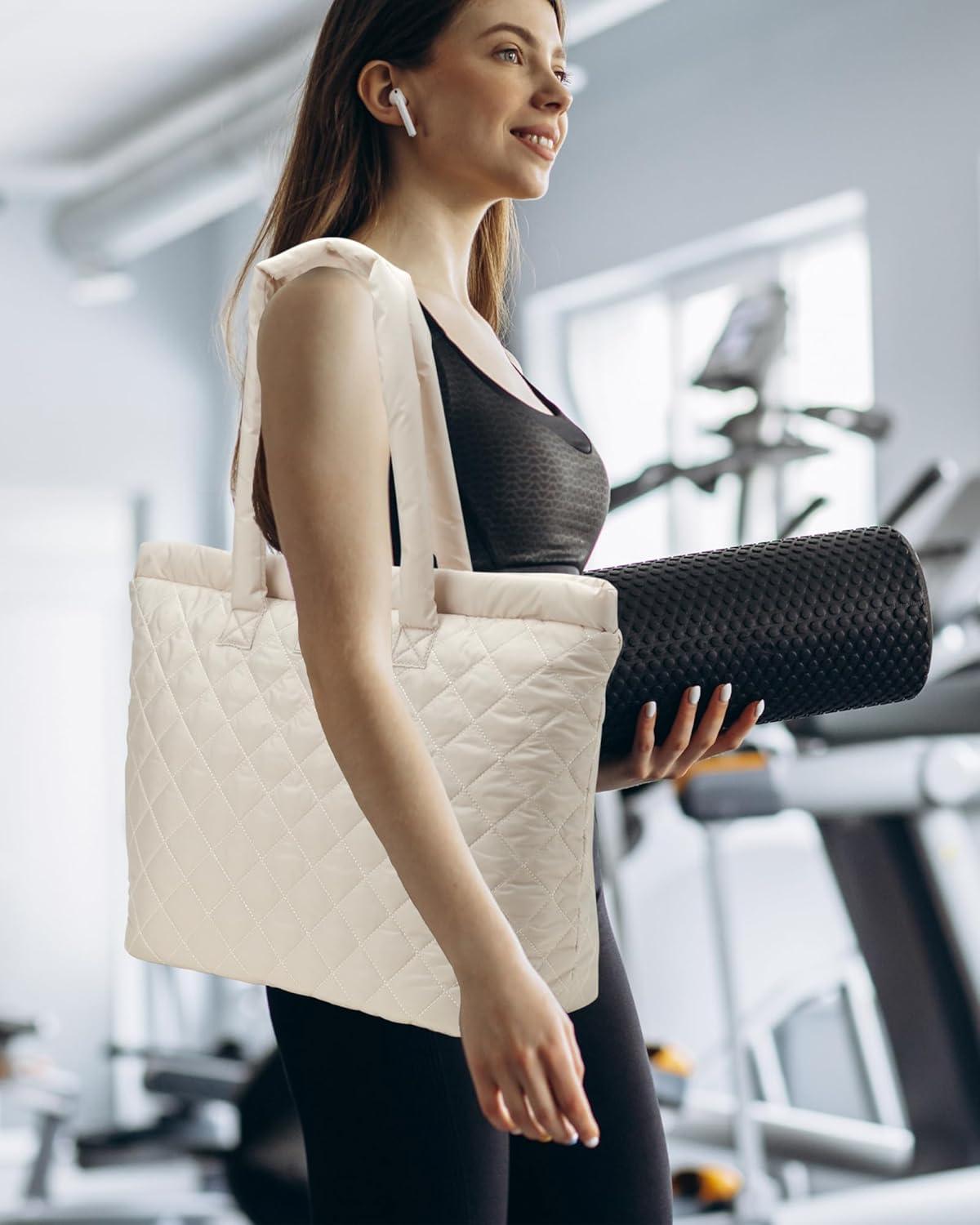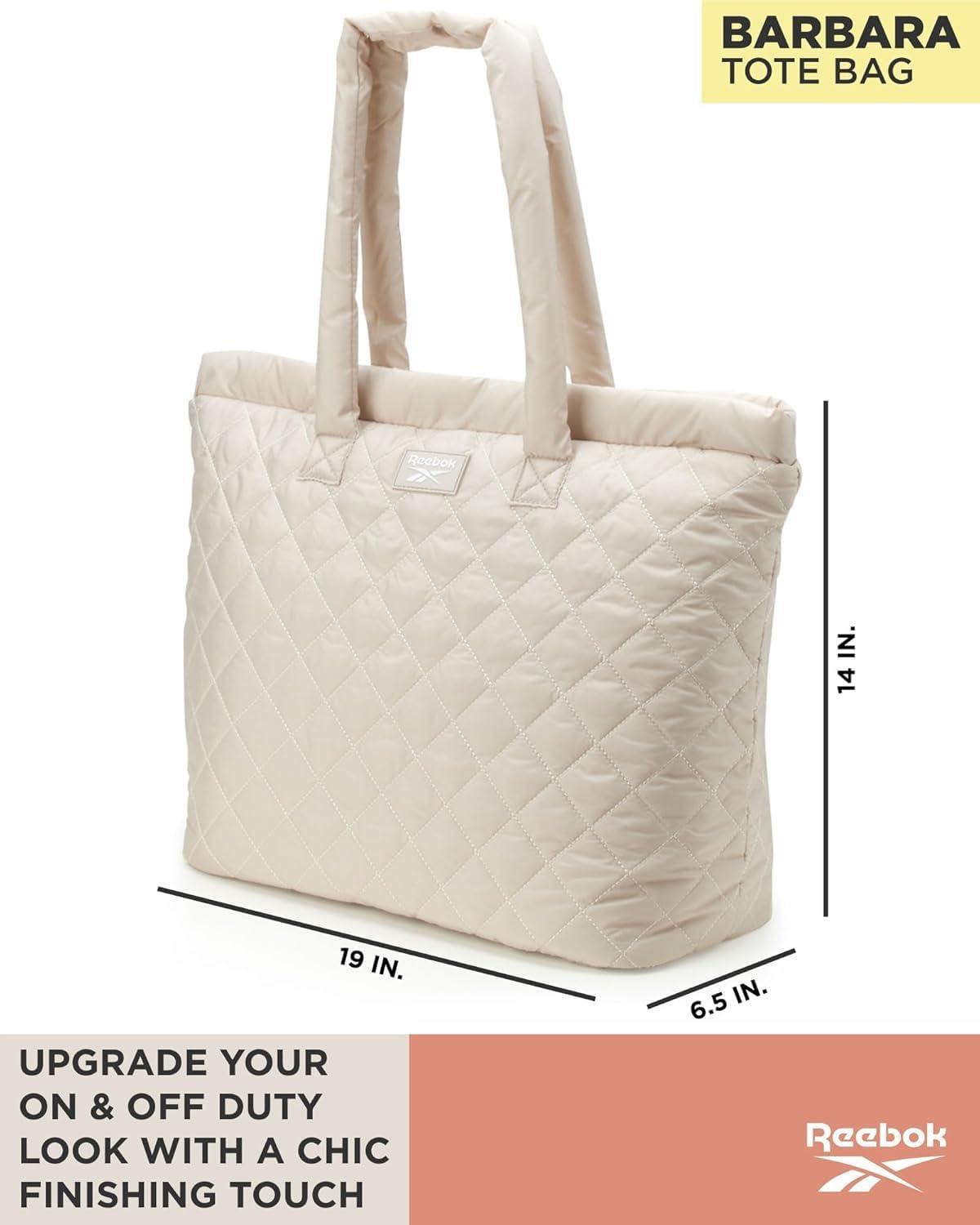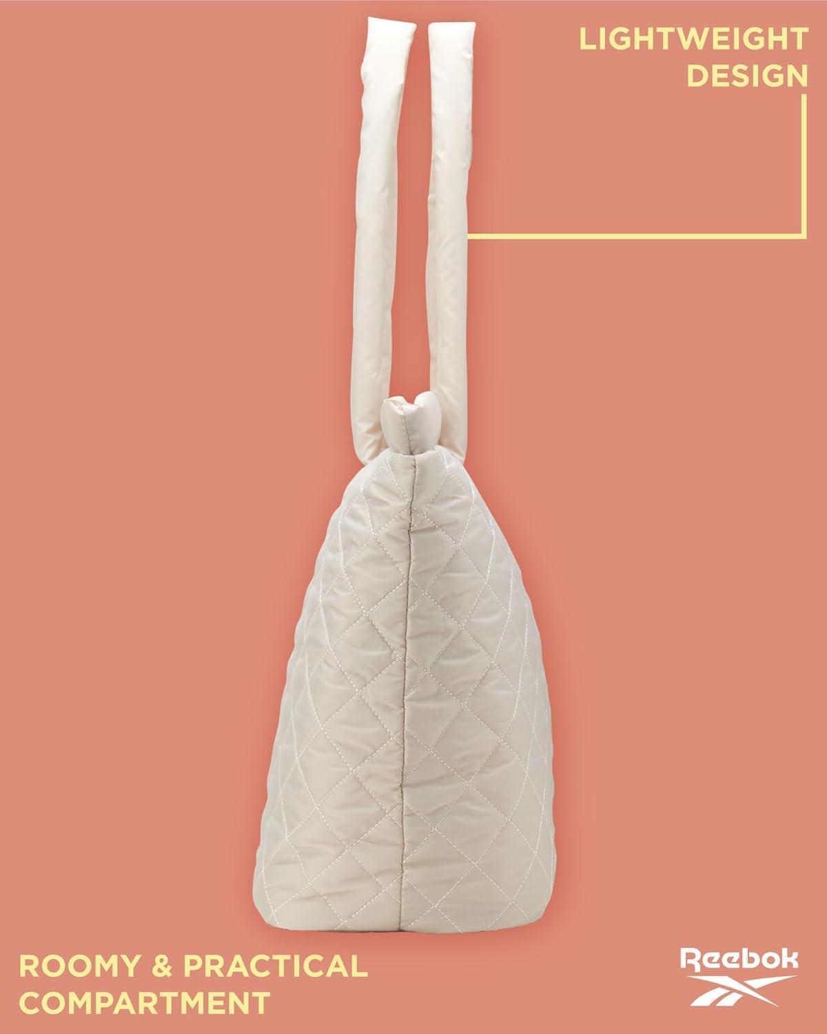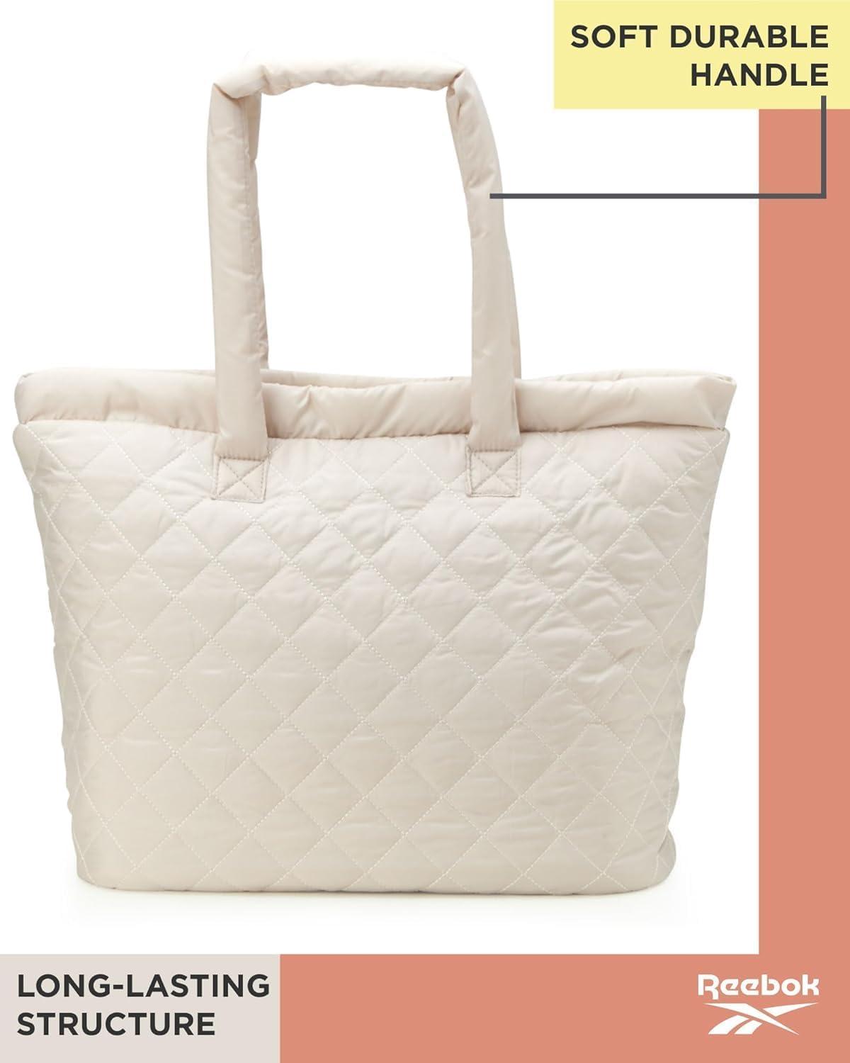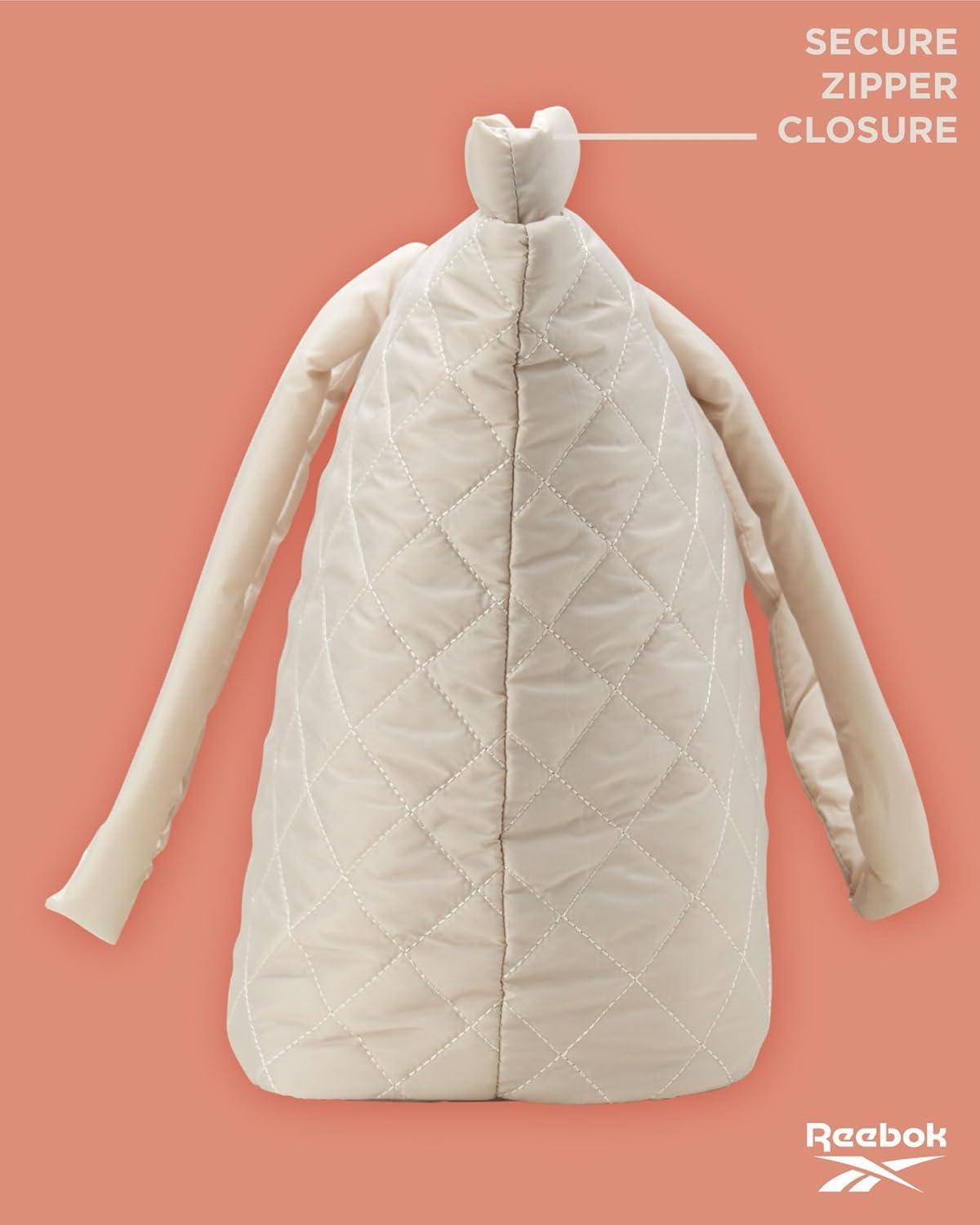 Reebok Womens Tote Bag - Lightweight Quilted Carry On Puffer Tote Bag for Women for Gym, Work, Travel, and Everyday Use(Quilted Cream Barbara)