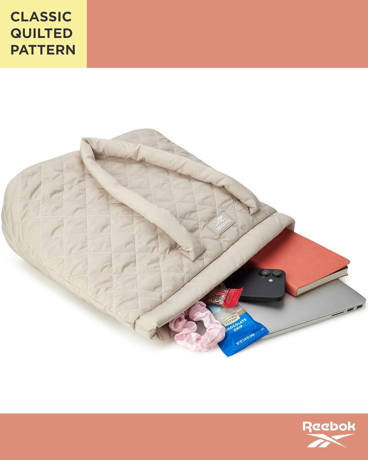 Reebok Womens Tote Bag – Lightweight Quilted Carry On Puffer Tote Bag for Women for Gym, Work, Travel, and Everyday Use(Quilted Cream Barbara)