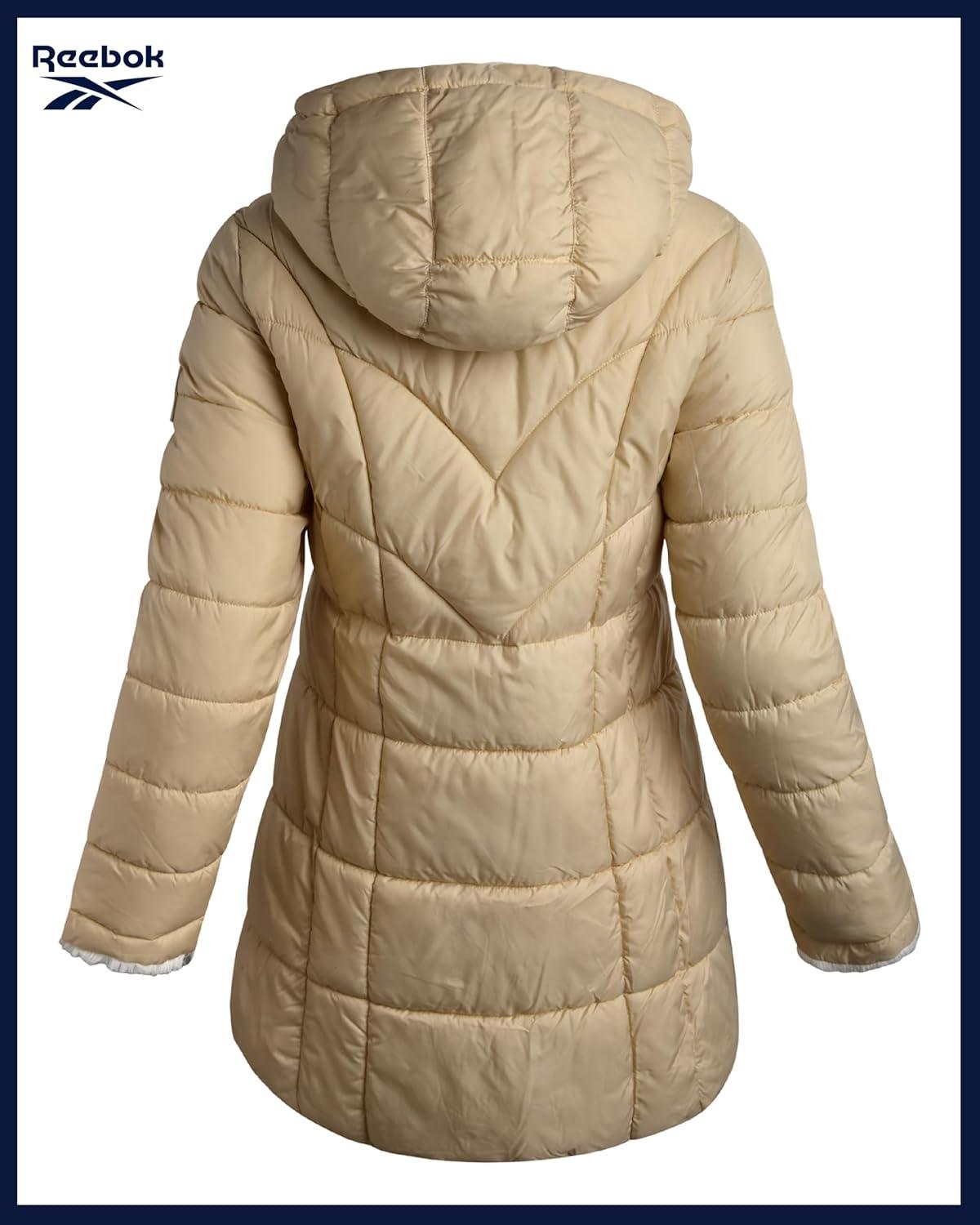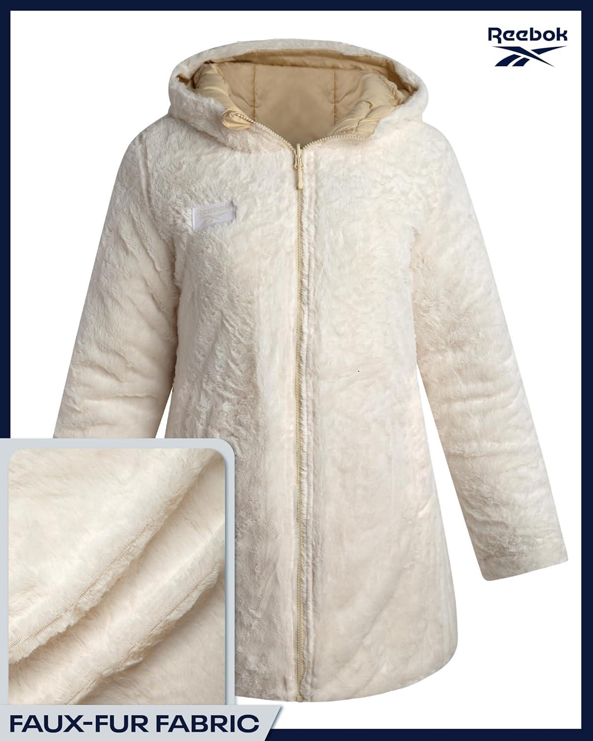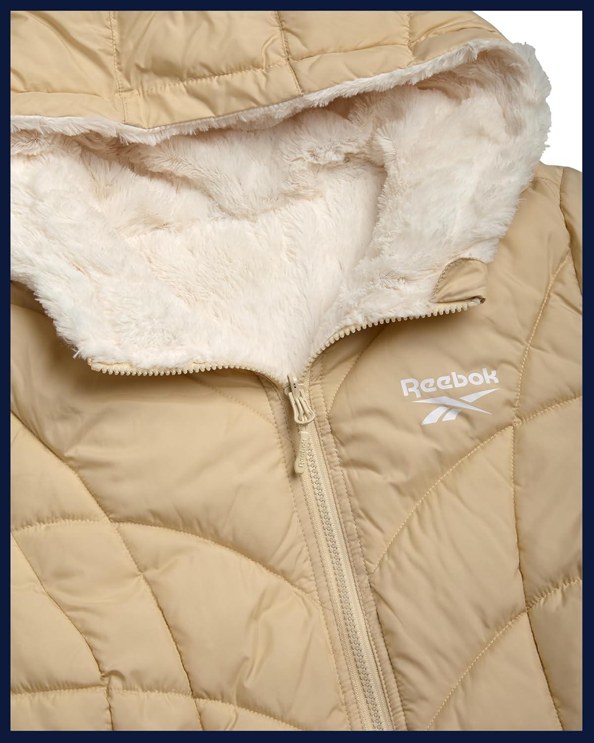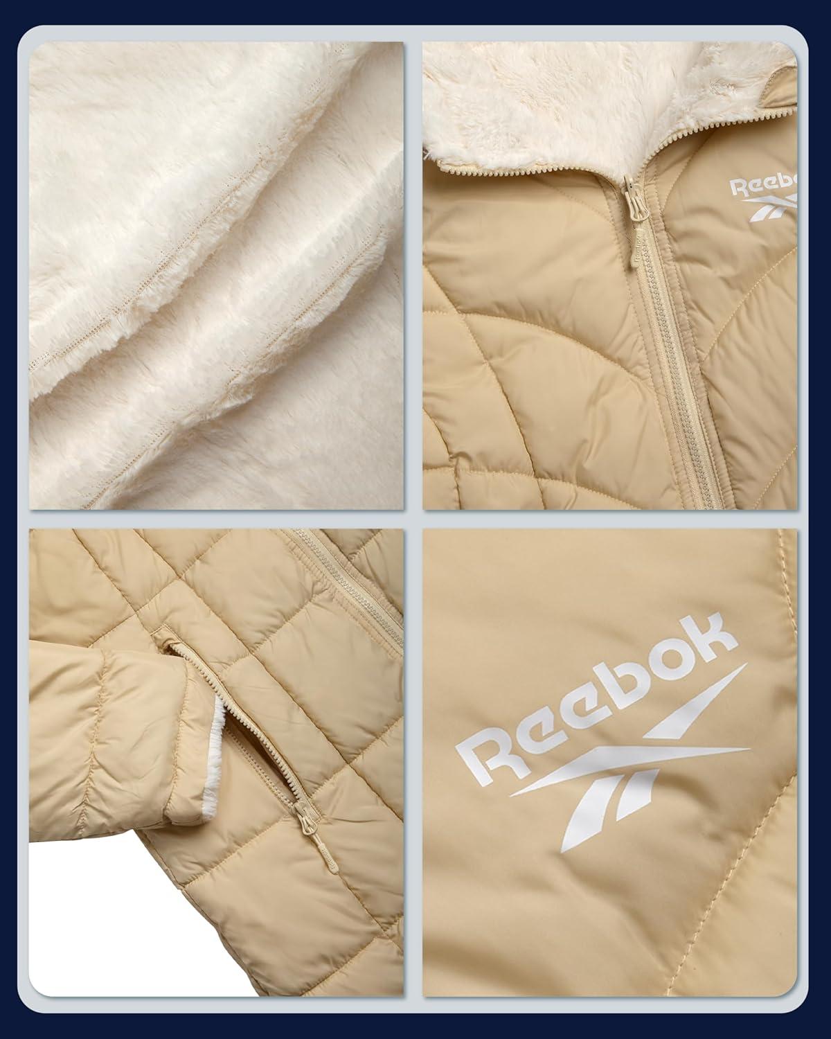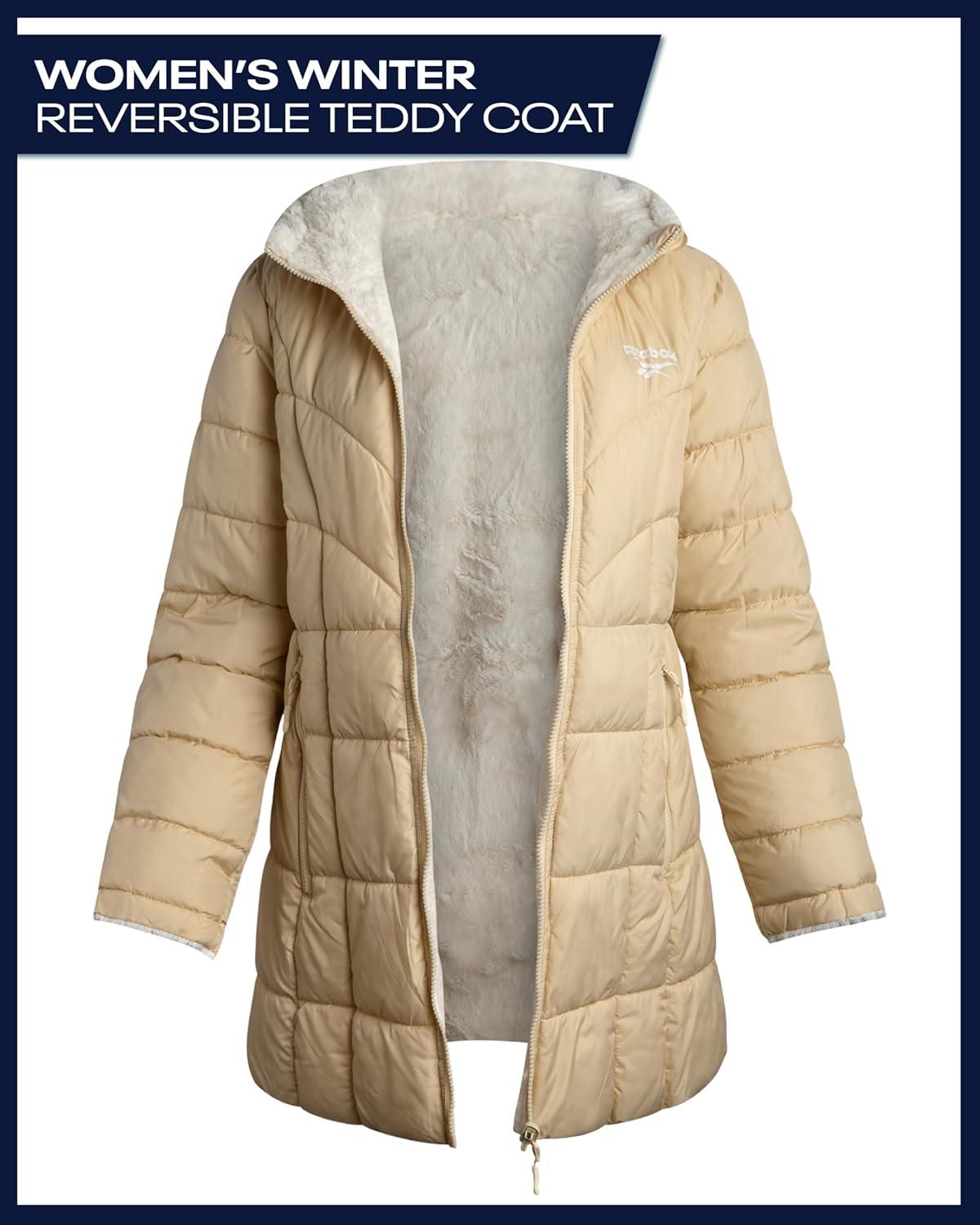 Reebok Womens Winter Jacket – Sherpa Fleece Lined Reversible Insulated Puffer Parka Winter Coats for Women with Faux Fur Hood(Champagne)