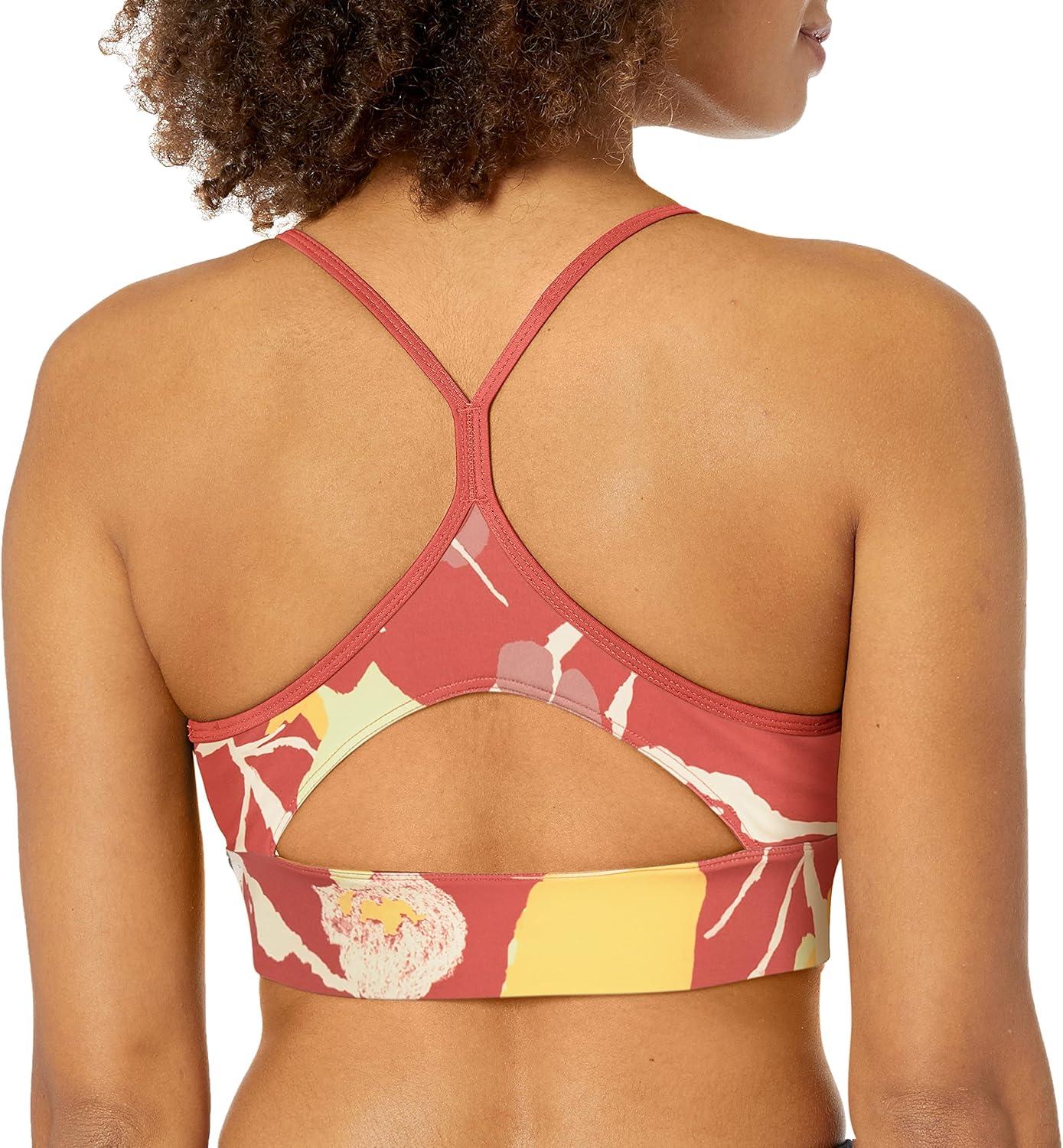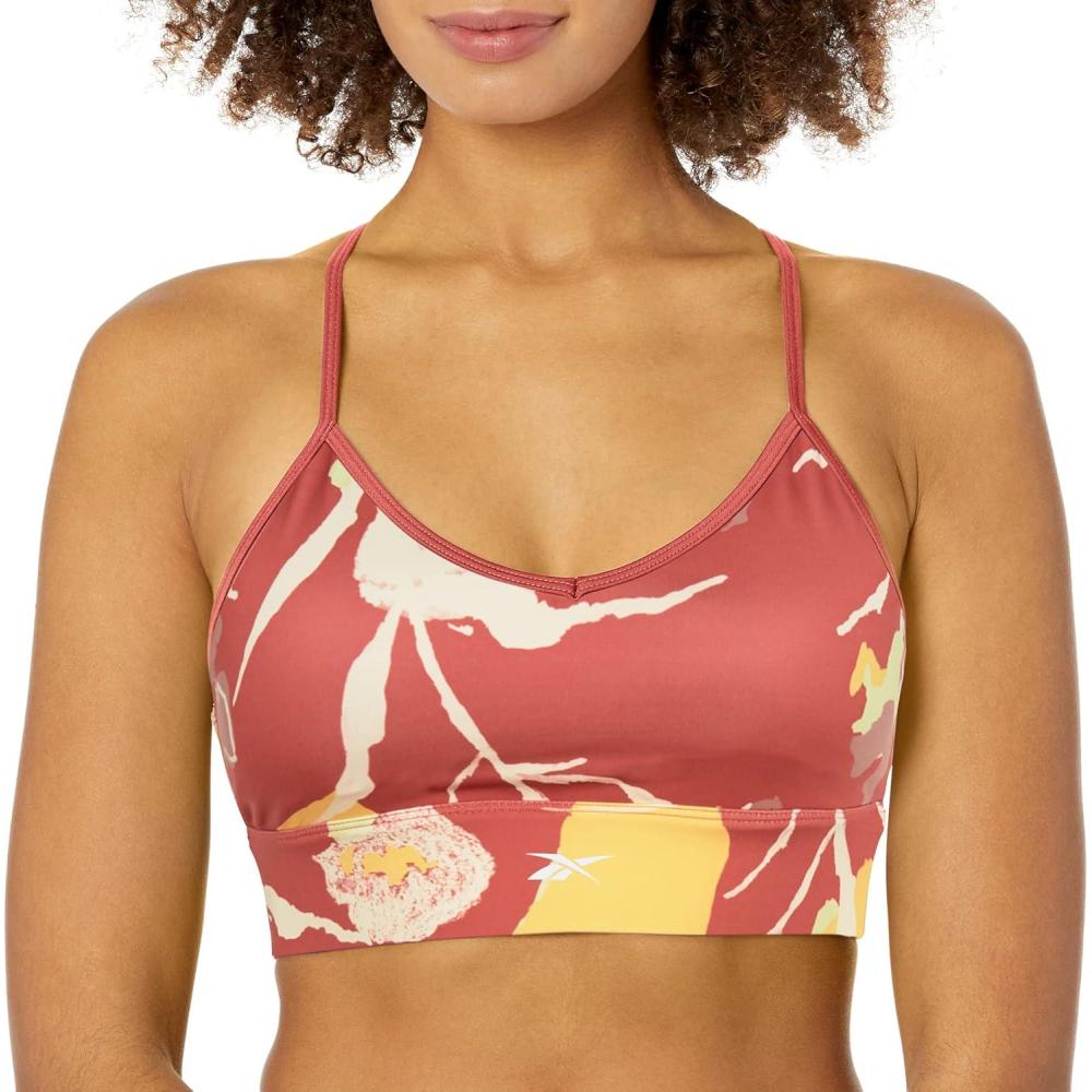 Reebok Womens WOR Tri Back Medium Impact Training Sports Bra(Batik Blue/Yellow/All Over Print)