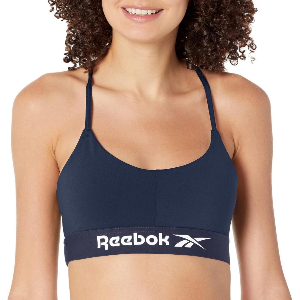 Reebok Womens WOR Tri Back Medium Impact Training Sports Bra(Vector Navy/White/Cross Back)