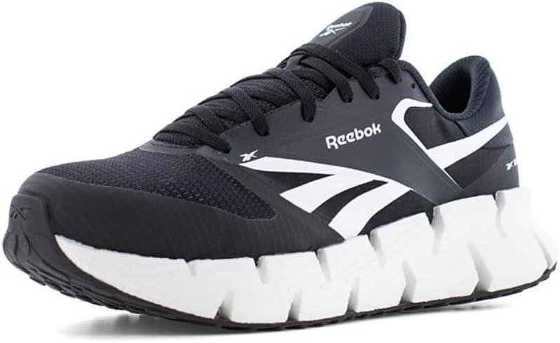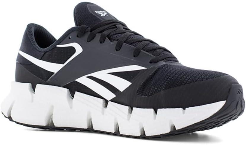 Meet the new shape of work with the high energy return of Reebok's FloatZig Work Men's Black Athletic Work Shoe. Why choose between soft and springy? Fast and smooth? Designed to inspire everyone to lace up and get to work, these shoes are built with premium lightweight foam technology in a geometry that enhances cushioning, energy return and a smooth transition to give a unique underfoot experience while on the job.